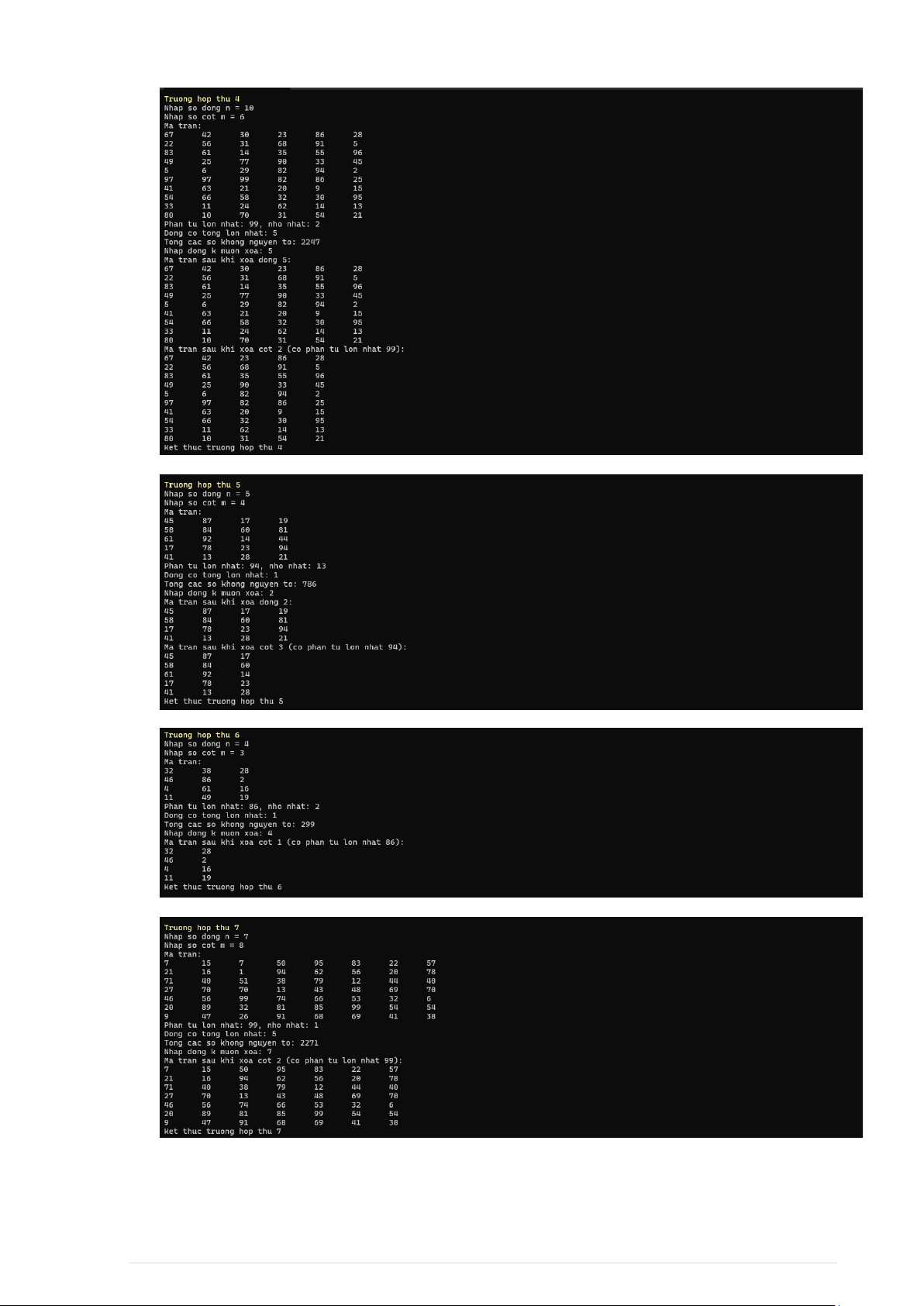 - Output: xuất ra ma trận, phần tử lớn nhất,nhỏ nhất, dòng có tổng lớn nhất, tổng các số