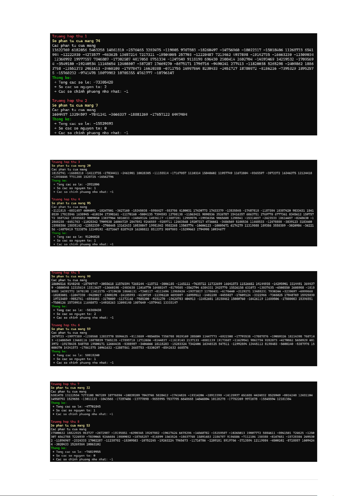 - Output: tổng các số lẻ, số lượng các số nguyên tố, số lượng các số chính phương
