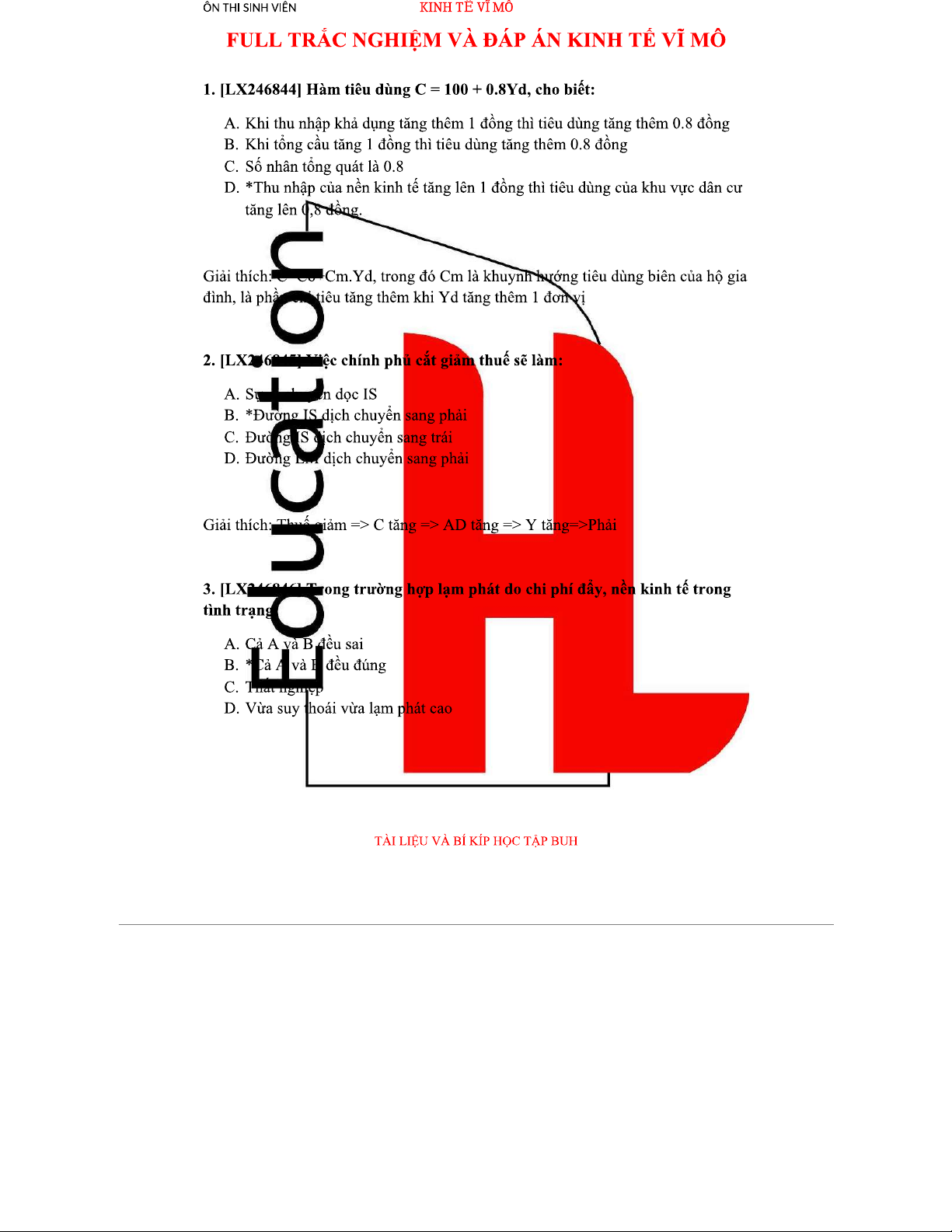 BUH VĨ-MÔ-ĐỀ-1 - Trắc nghiệm và đáp án Kinh tế Vĩ mô