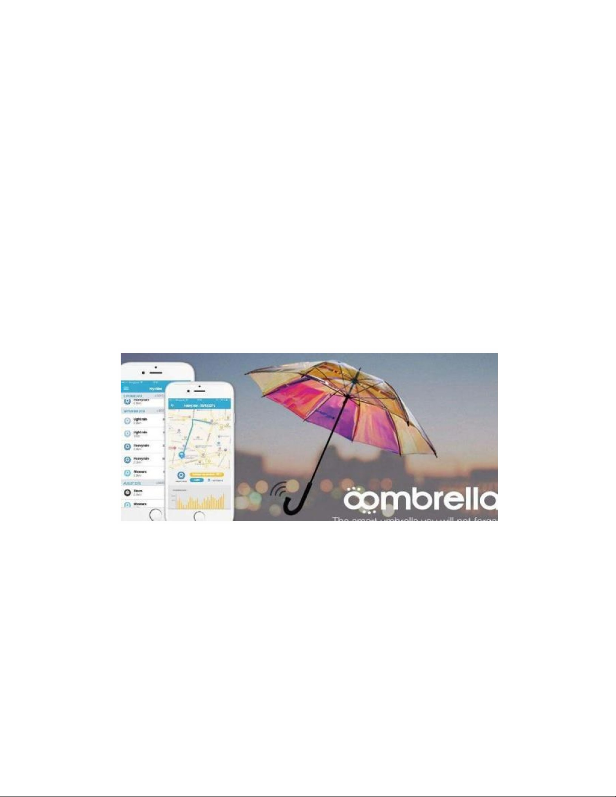 - Connected feature: an app indicates when it will rain; if the umbrella is lost, it can be found because it is connected.