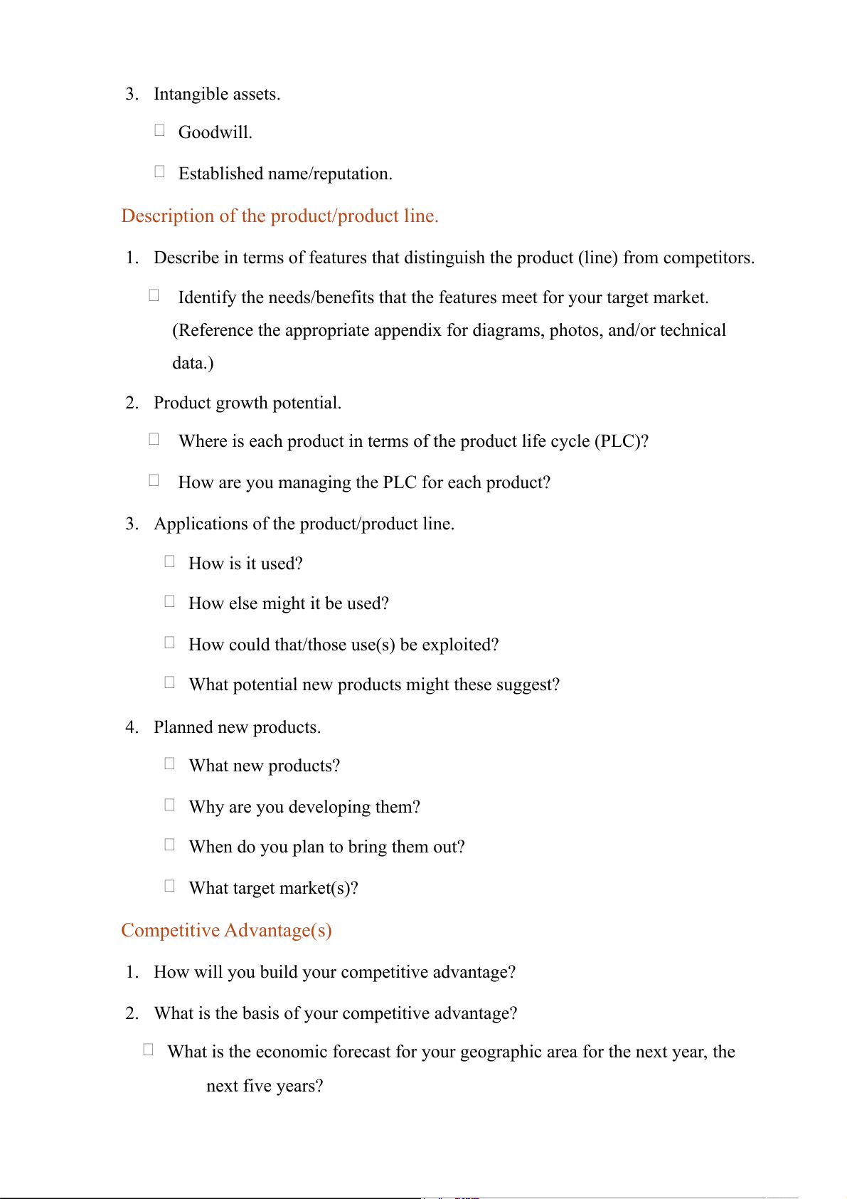 When do you plan to bring them out? What target market(s)? Competitive Advantage(s)