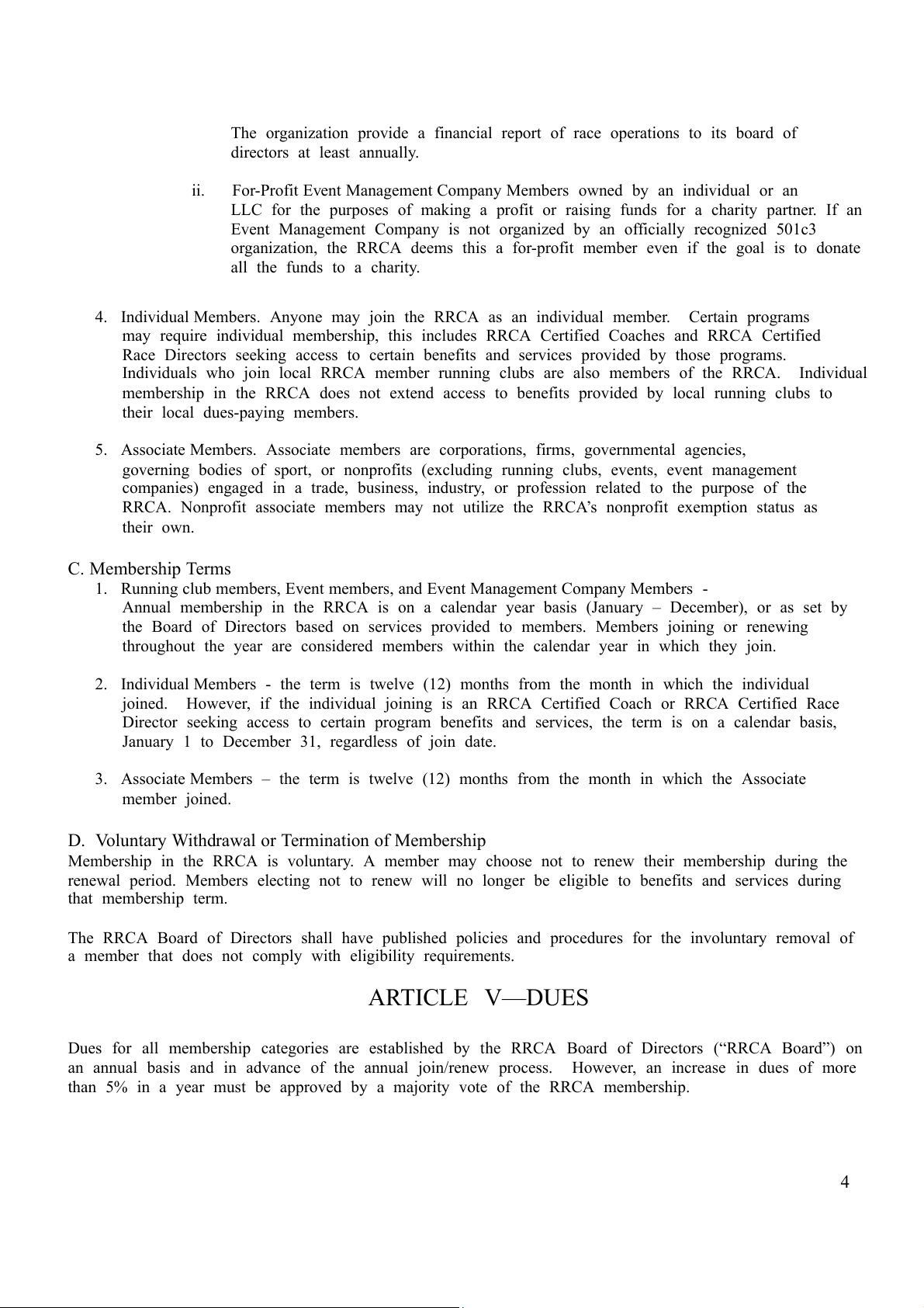 4. Comply with RRCA bylaws, rules, policies and procedures governing membership