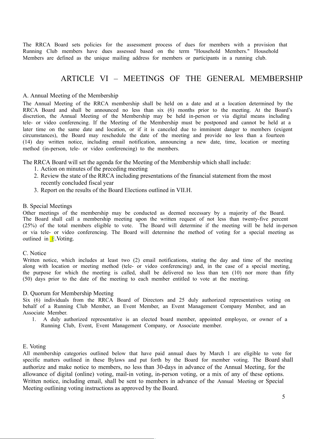 ARTICLE VI – Meetings of the General Membership A. Annual Meeting of the Membership B. Special Meetings C. Notice D. Quorum for Membership Meeting E. VOTING