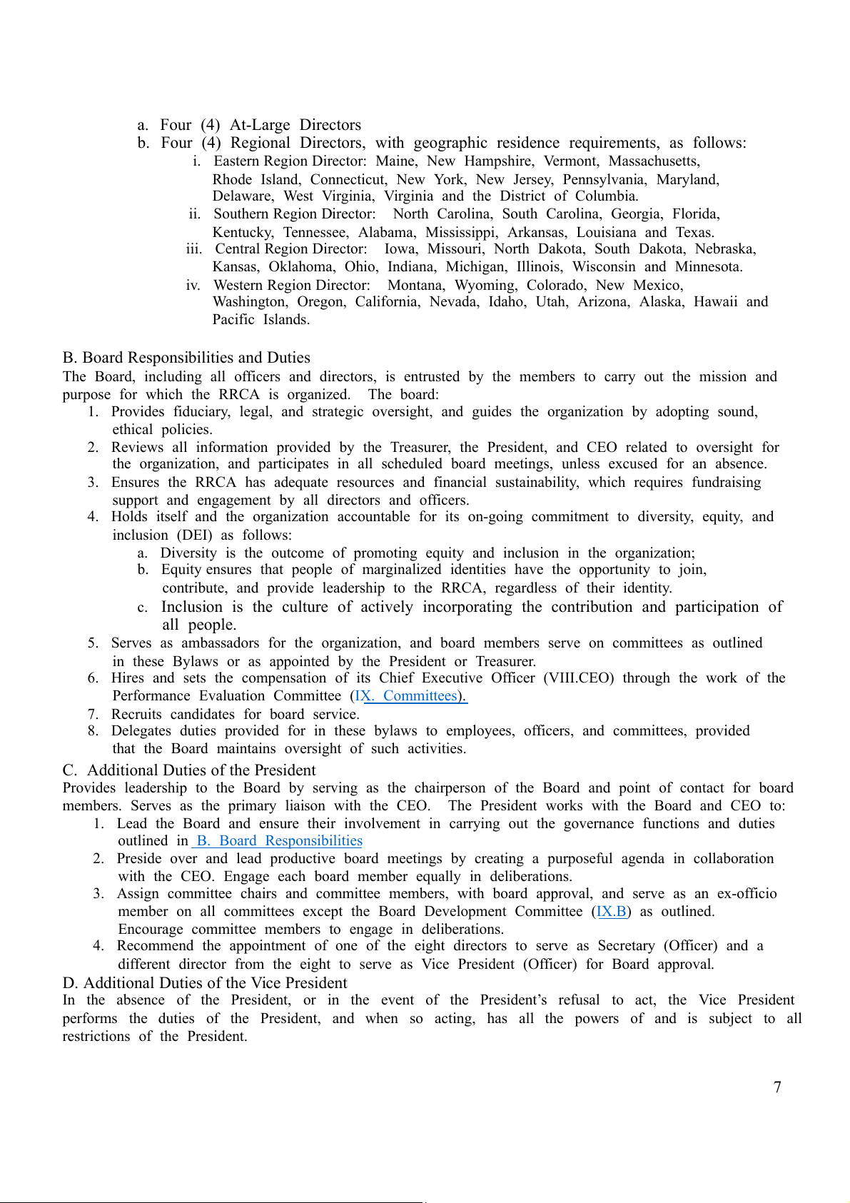 ARTICLE VII – Board of Directors A. Of ficers & Directors B. Board Responsibilities and Duties C. Additional Duties of the President D. Additional Duties of the Vice President E. Additional Duties of the Treasurer F. Additional Duties of the Secretary G. Board Meetings H. Elections I. T erms of Board Members
