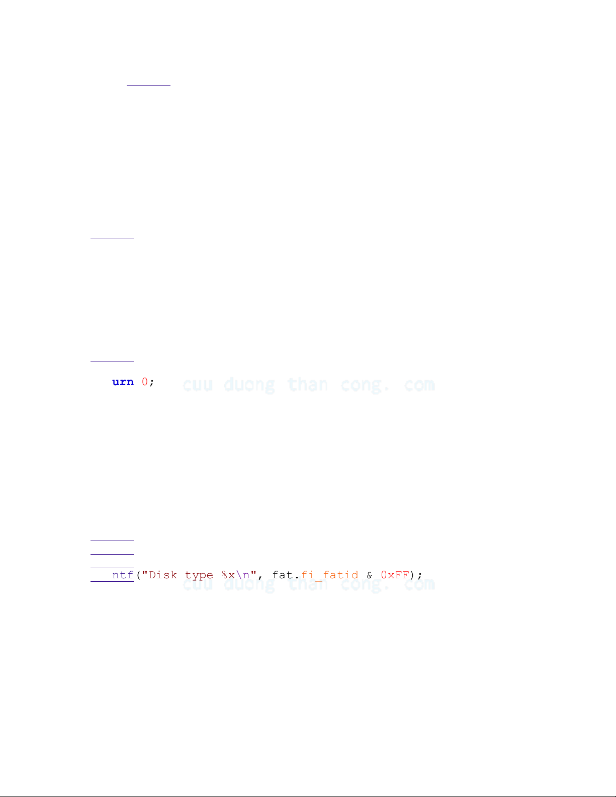 3. Cho biết thông tin FAT#include #include void main(void) { struct fatinfo fat; getfatd(&fat);