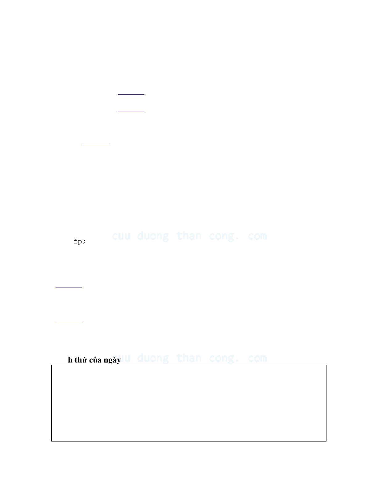 printf("The file size in bytes is %ld\n", file_size); close(fp); } return 0; } Tính thứ của ngày #include #include struct date { int month; int day; int year; } date_1; 18 CuuDuongThanCong.com
