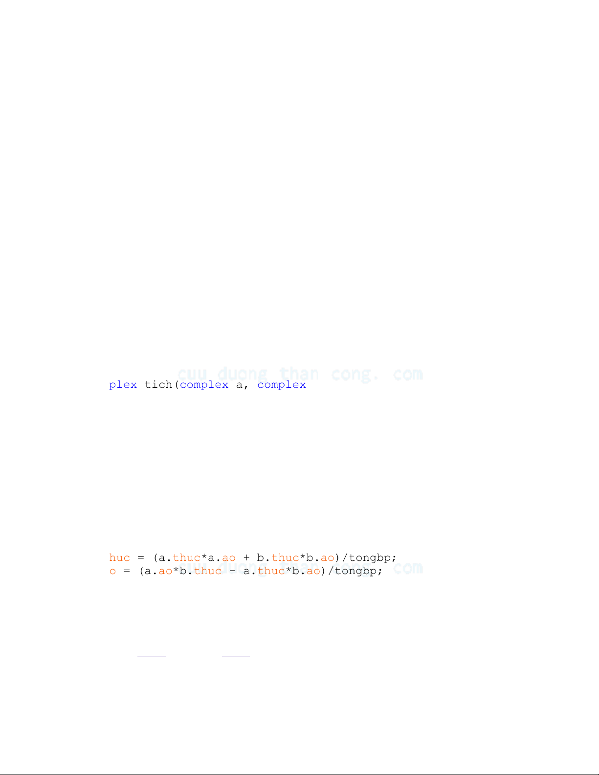 complex tong(complex a, complex { complex c; c.thuc = a.thuc + b.thuc; c.ao = a.ao + b.ao; return c; }