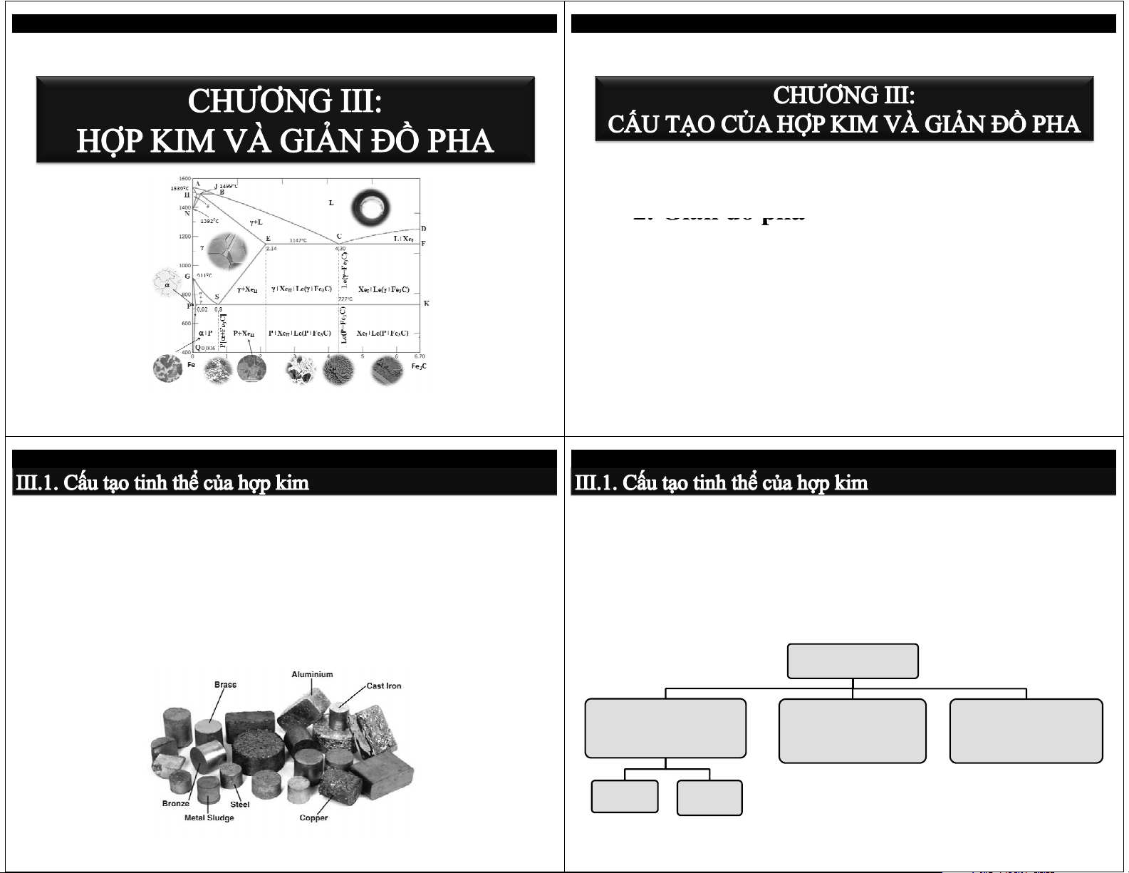 III.1. Cấu tạo của hợp kim III.2. Giản đồ pha III.3. Giản đồ Fe-C