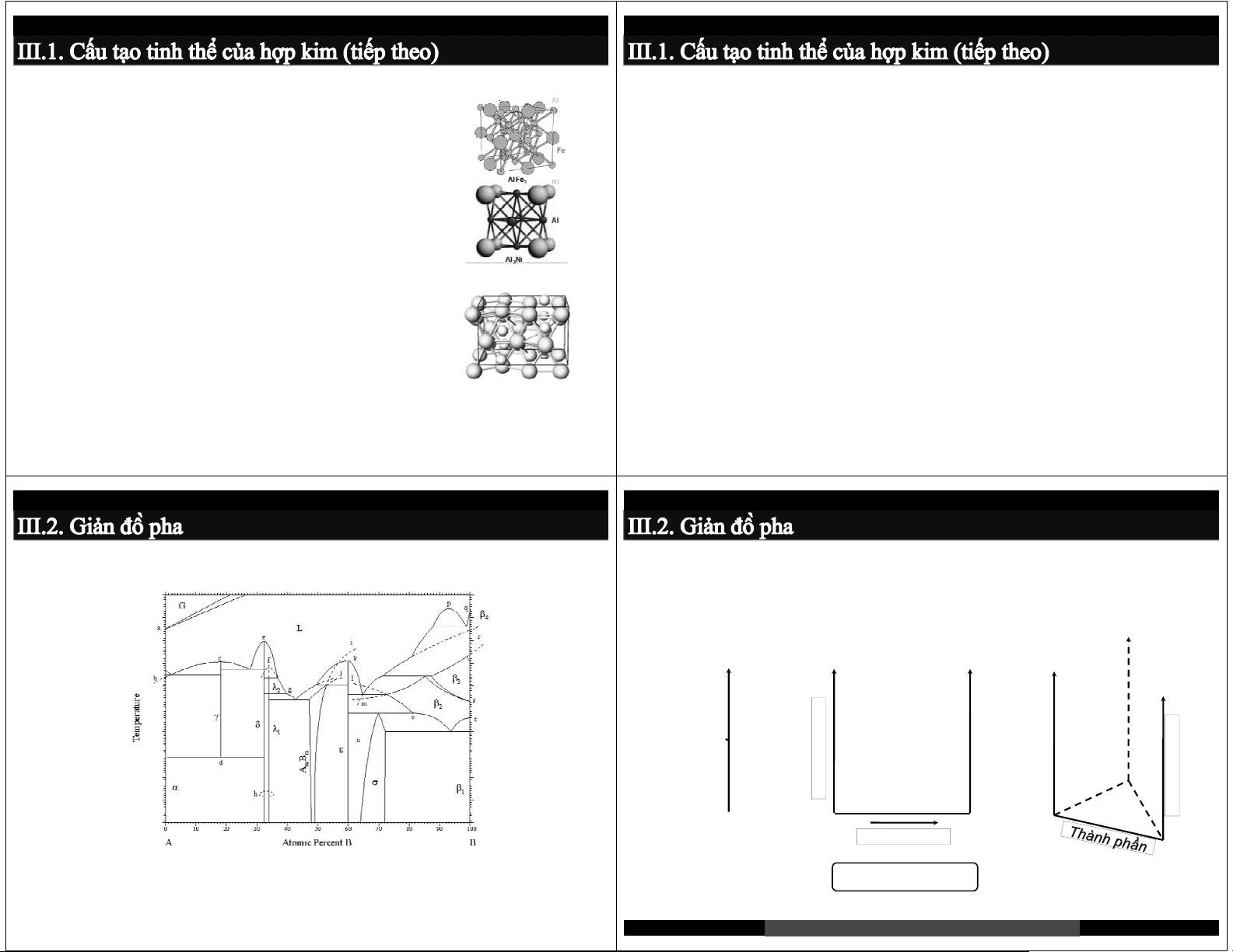 III.1. Cấu tạo của hợp kim III.2. Giản đồ pha III.3. Giản đồ Fe-C Hợp kim X4 Hợp kim X3