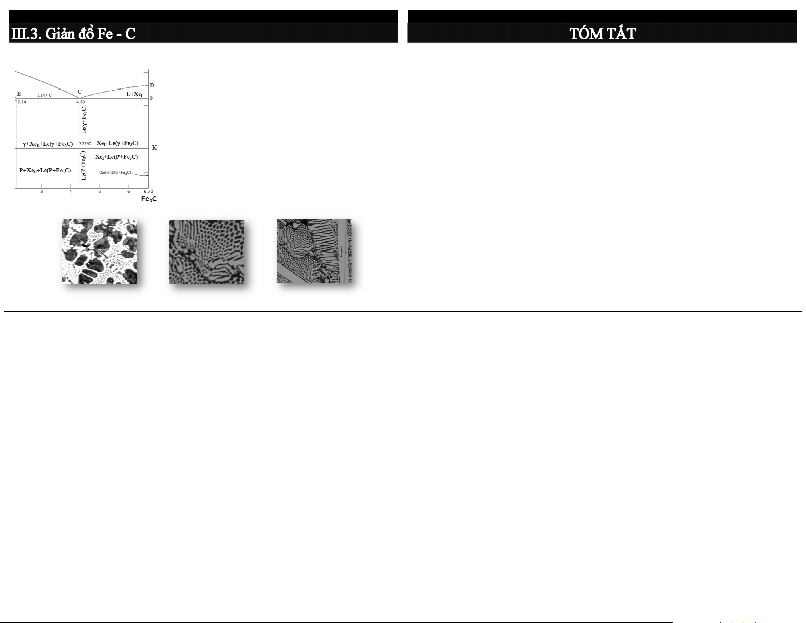 Nắm chắc giản đồ pha Fe – C (Fe – Fe tổ chức Xe 3C): I + Le