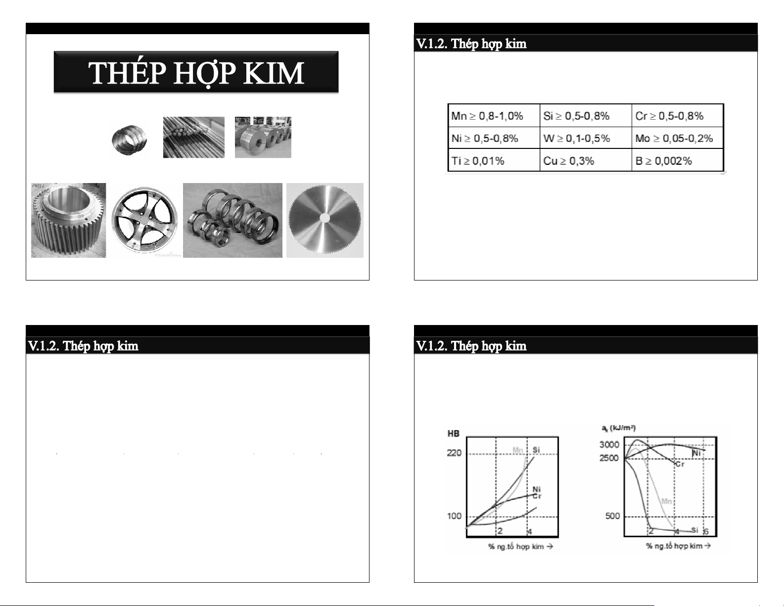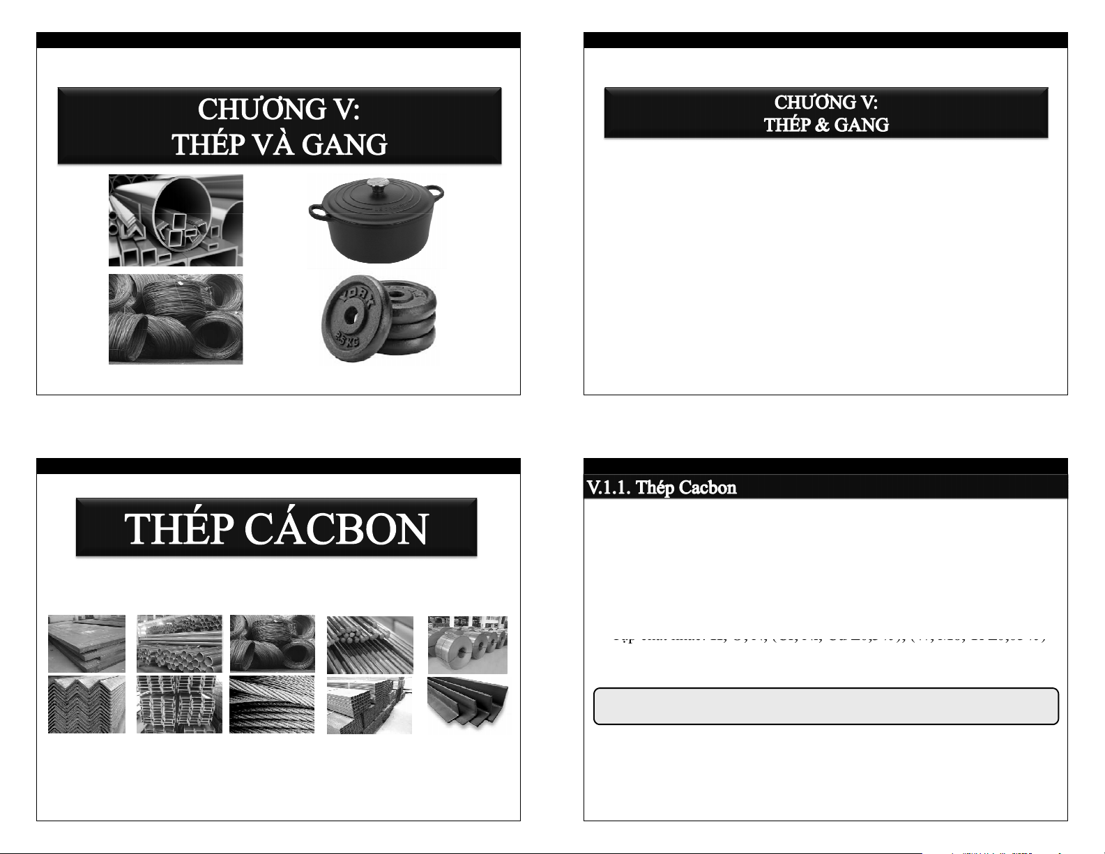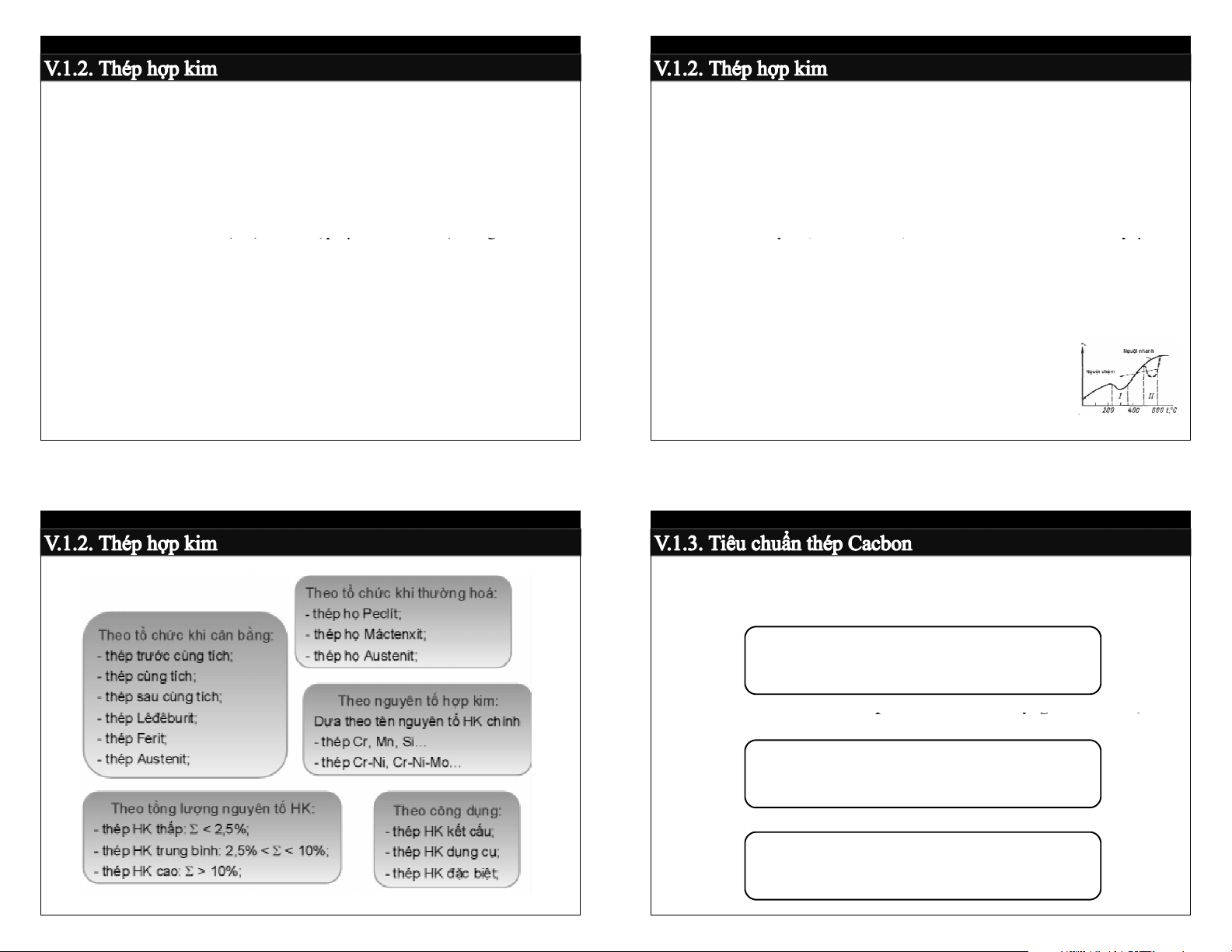 V.4. Thép dụng cụ V.5. Thép đặc biệt V.6. Gang Đặc điểm chung: