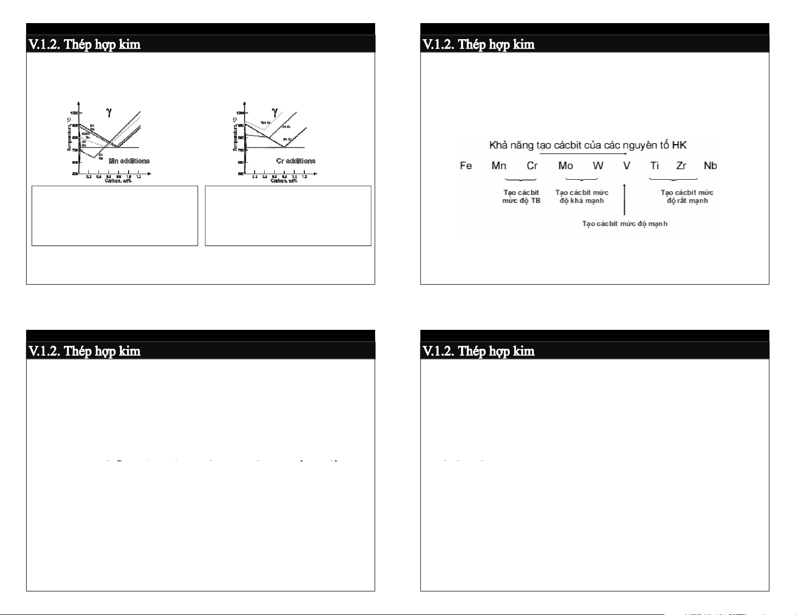tính chống mài mòn, nâng cao độ thấm tôi, tạo cacbit cứng thấp - Để̉ tăng độ ộ thấm tôi: thêm Cr, r Mn, Si, W , ( W ~1% mỗ m i loạ oại)