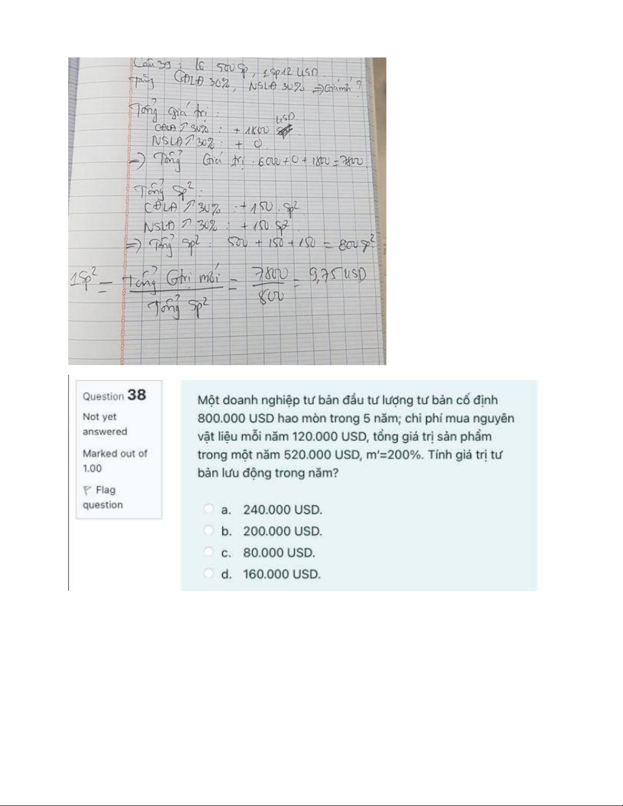 bản3/2. Tính giá trị tư liệu sản xuất đã đầu tư? A. 240.000 USD B. 480.000 USD C. 720.000 USD lOMoAR cPSD| 61557159 D. 1.000.000 USD