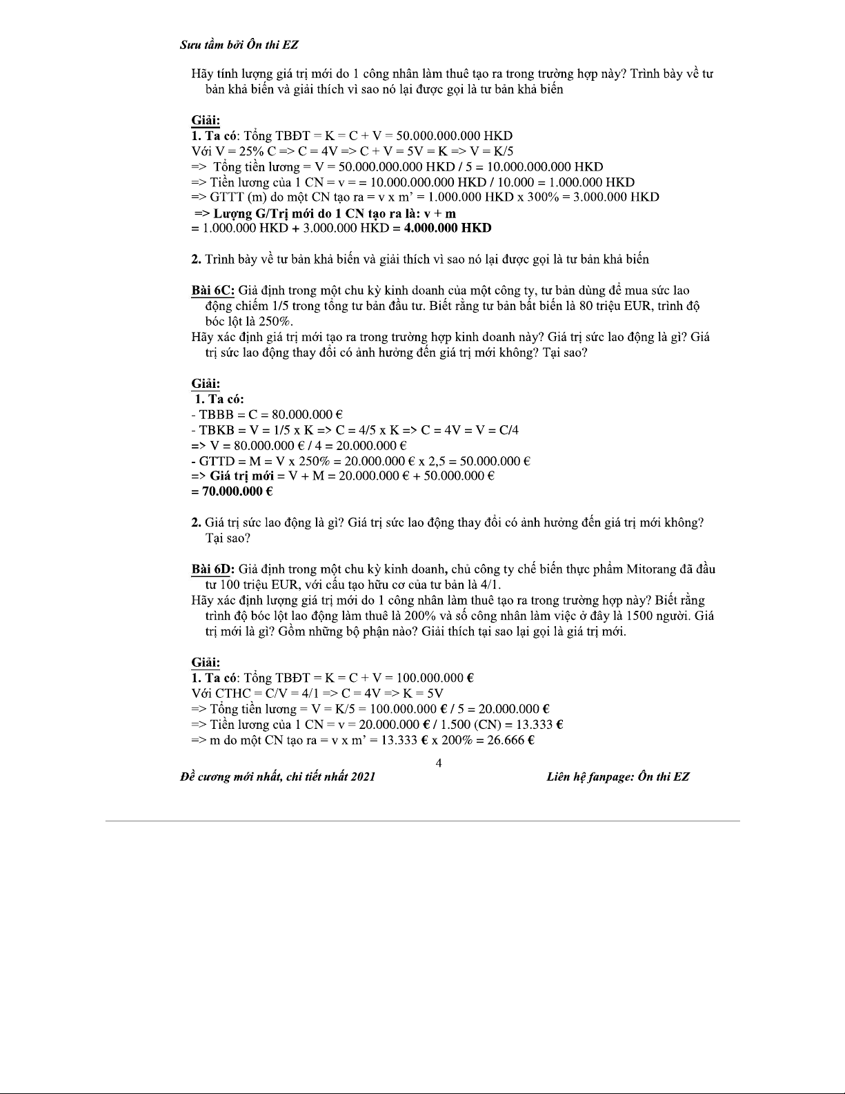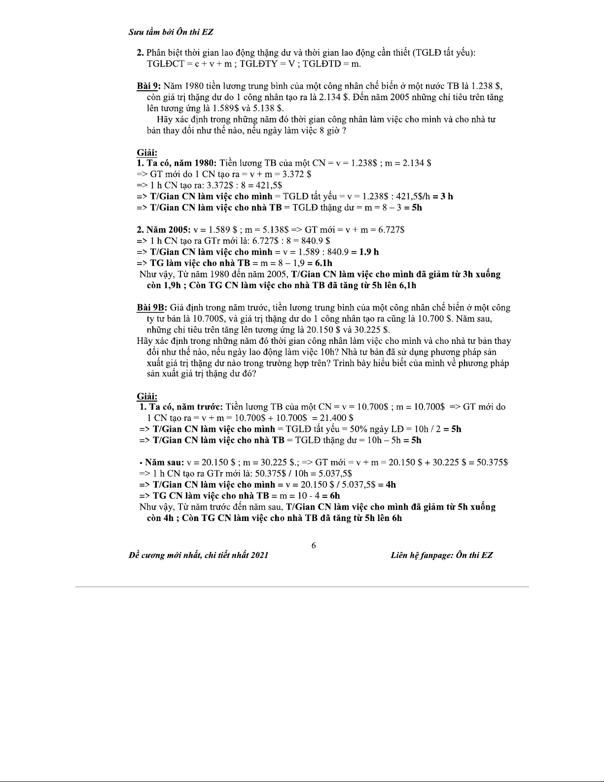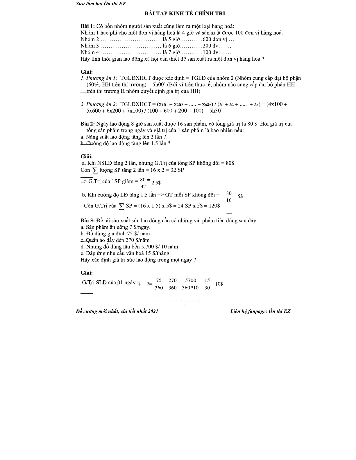 Các bài tập Kinh tế chính trị Mác-Lênin và phân tích giá trị lao động