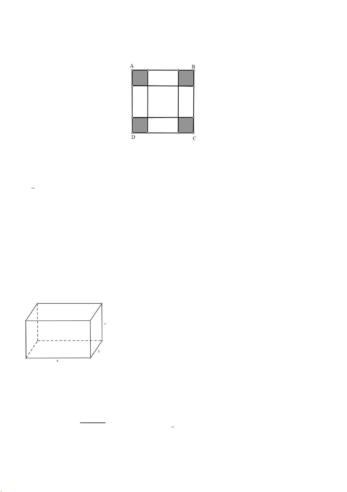 hình vuông bằng nhau, mỗi hình vuông có cạnh bằng x (cm), rồi gập tấm nhôm lại như hình vẽ dưới