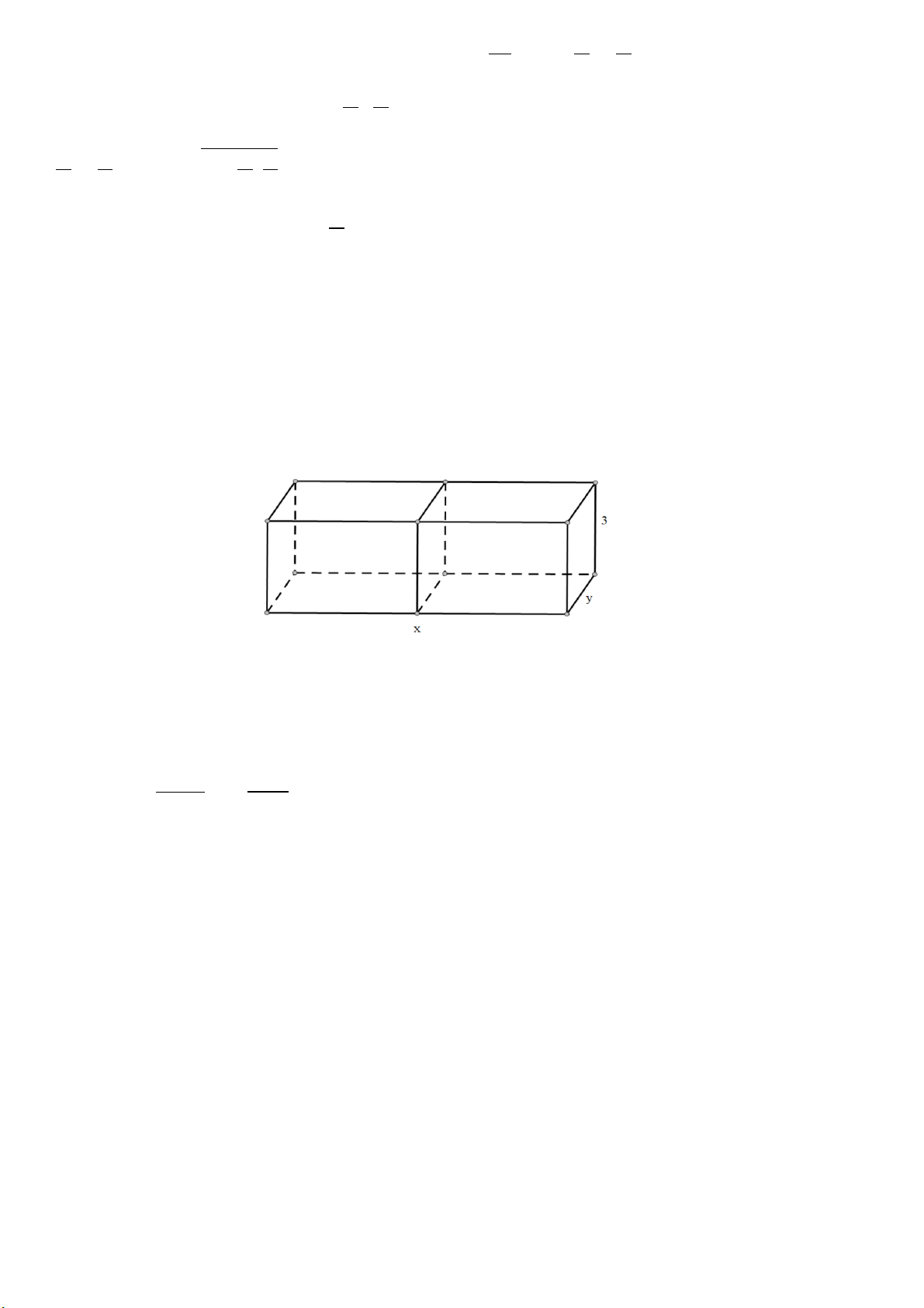 thước x, y, z (dm). Biết tỉ số hai cạnh đáy là x : y = 1 : 3 thể tích của hộp bằng 18 lít. Để tốn ít vật