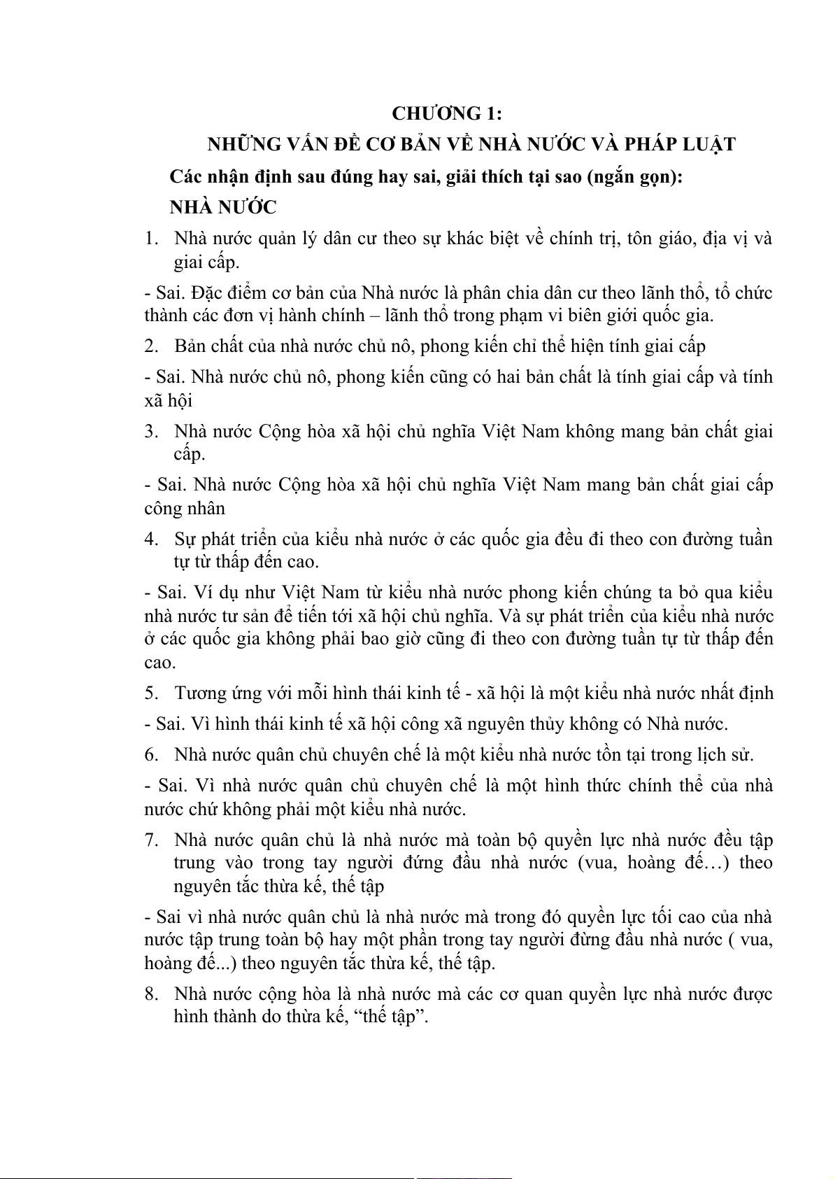 - Nhà nước xuất hiện trong mọi hình thái kinh tế xã hội là sai vì không xuất