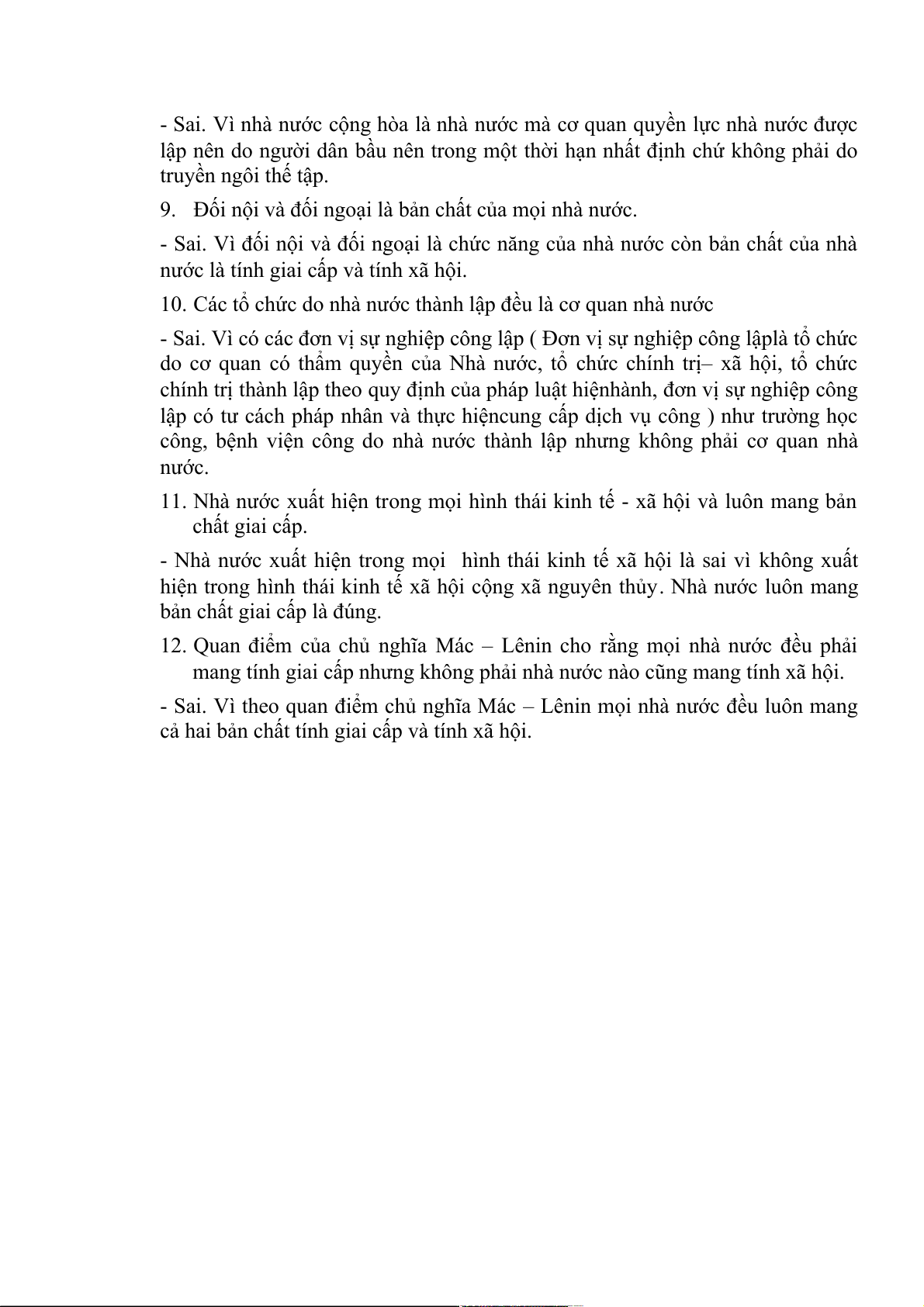 11. Nhà nước xuất hiện trong mọi hình thái kinh tế - xã hội và luôn mang bản chất giai cấp.