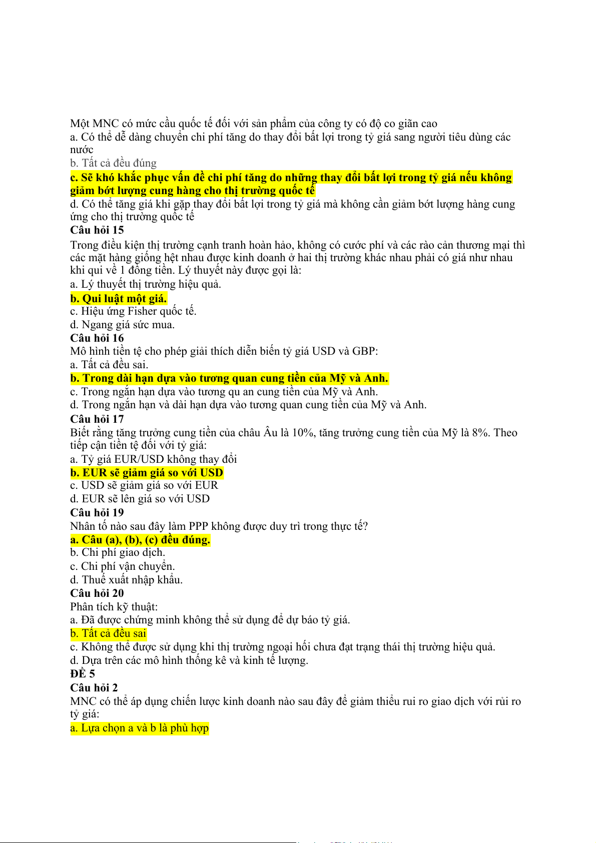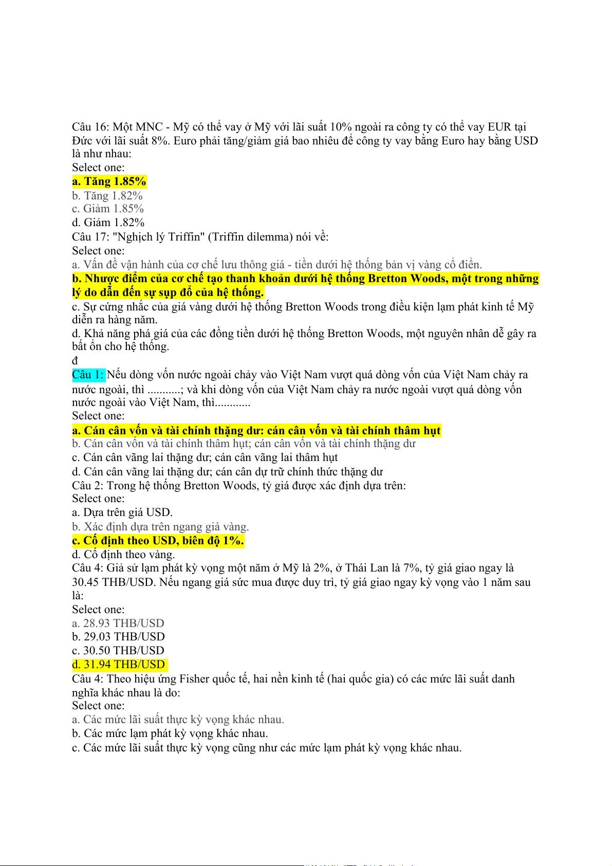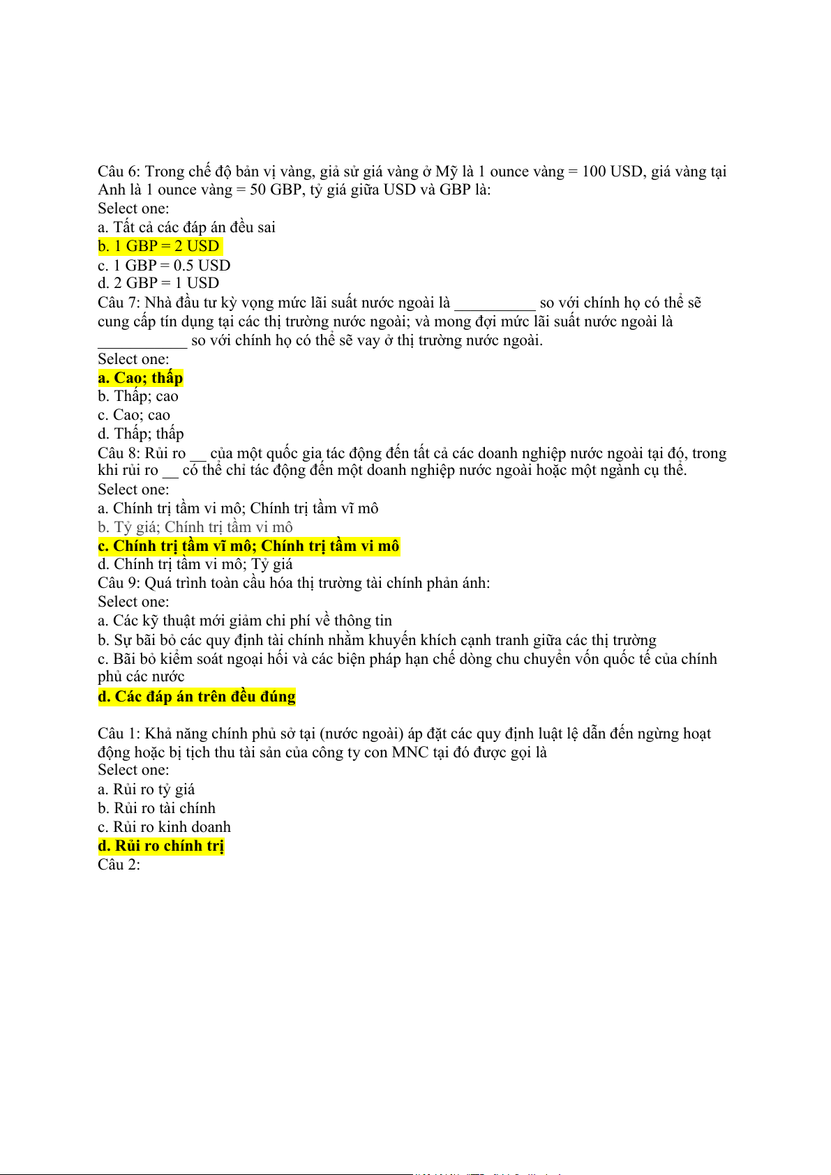 Câu hỏi 17 Một công ty đa quốc gia Mỹ thể vay Mỹ với lãi suất 10% ngoài ra công ty