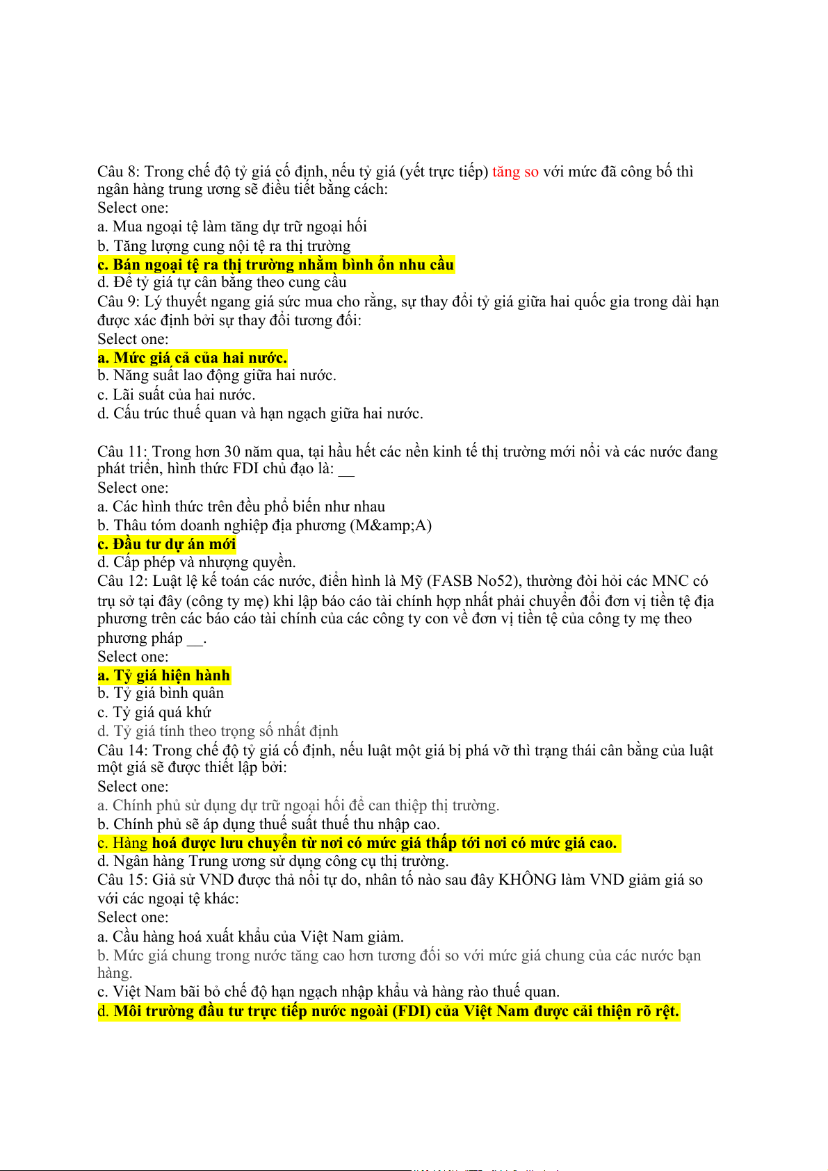 d. Nội tệ sẽ lên giá trên thị trường ngoại hối. Câu hỏi 9