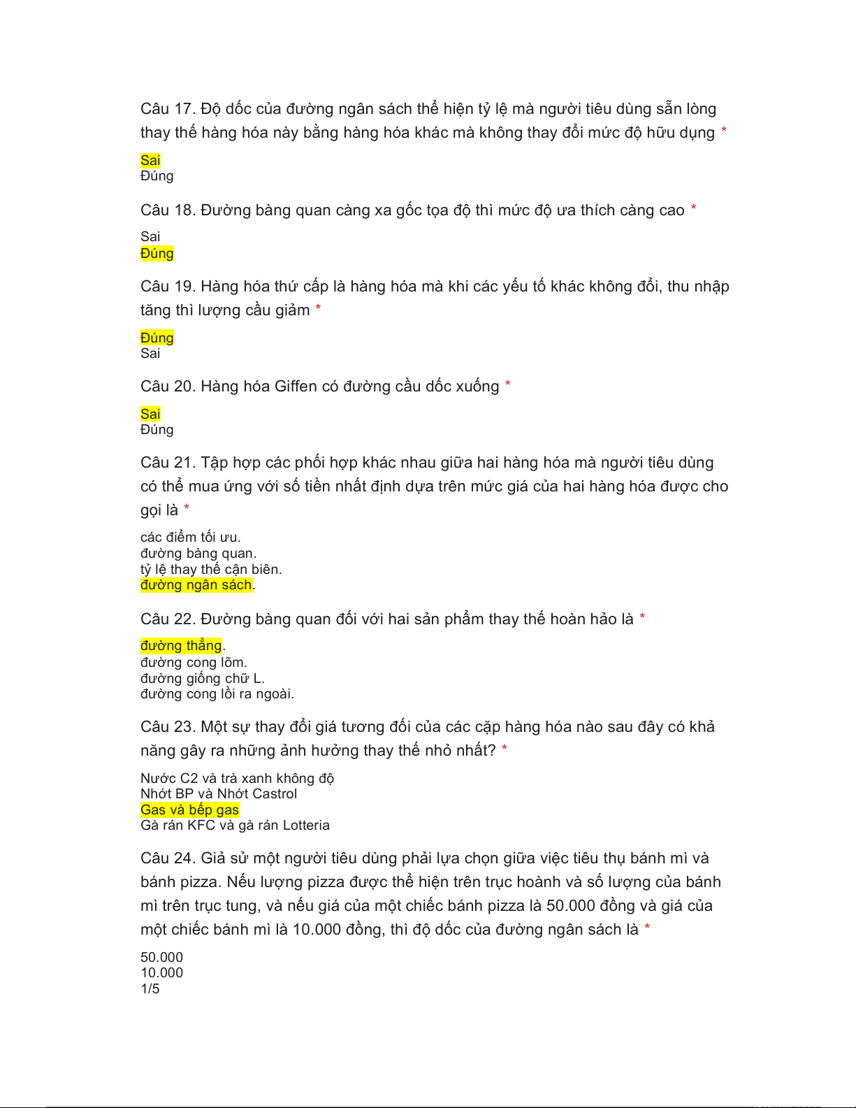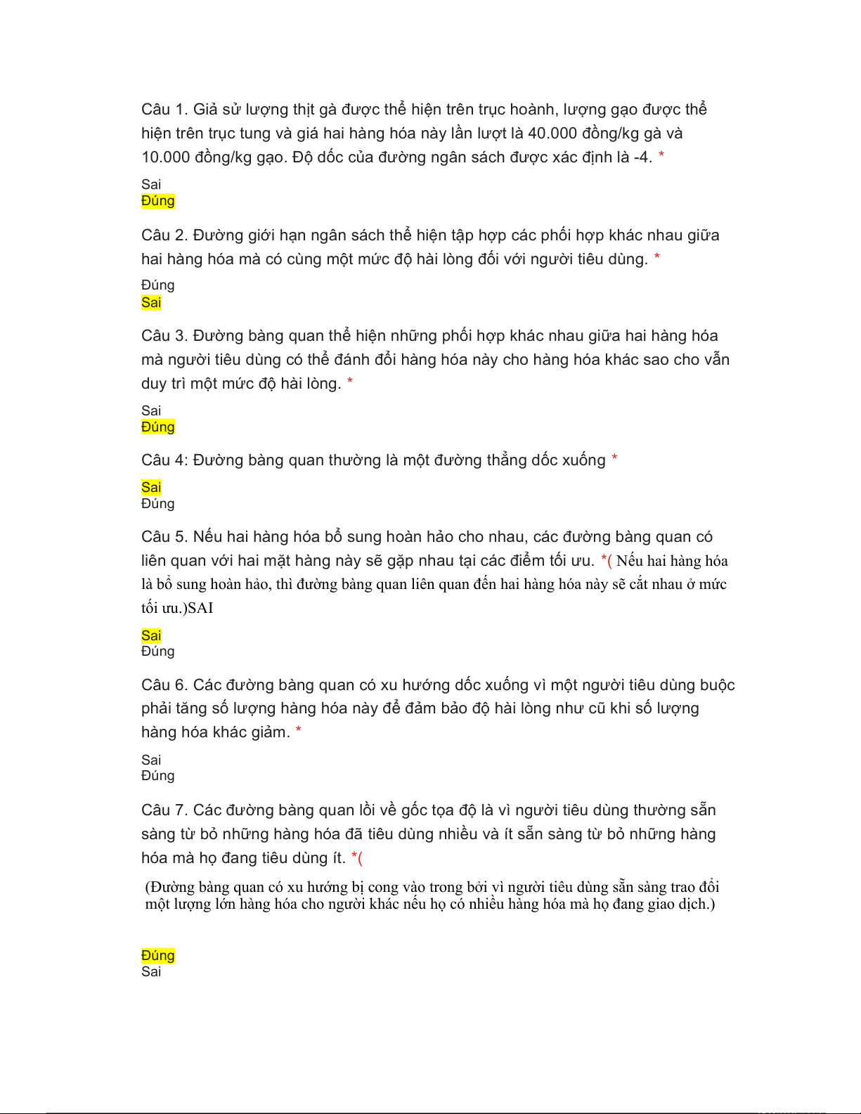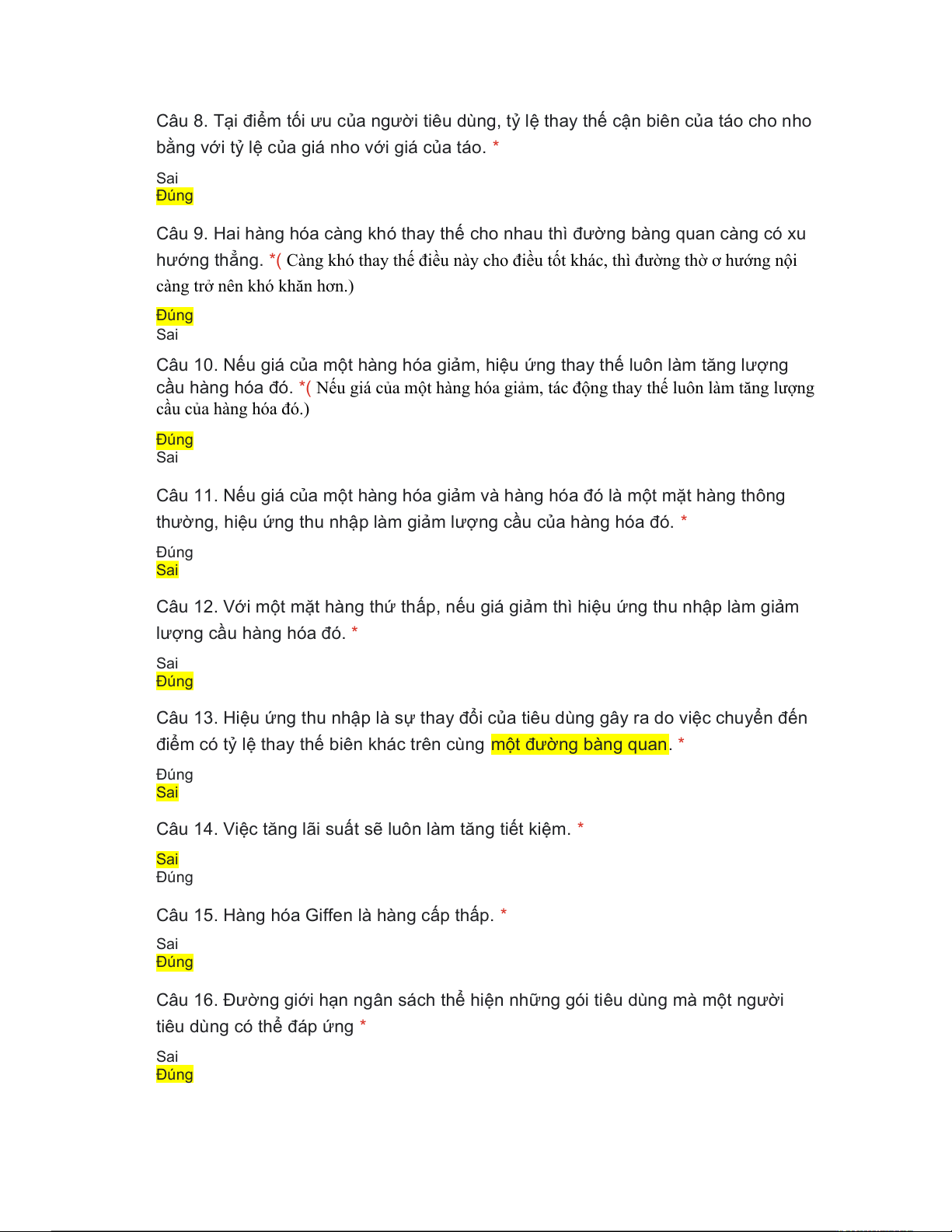 Câu 15. Hàng hóa Giffen là hàng cấp thấp. * Sai Đúng