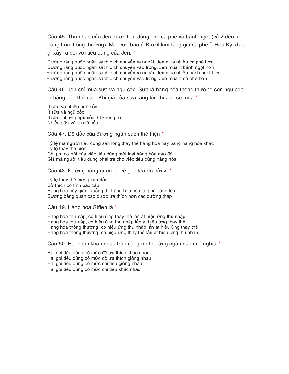 Câu 46. Jen chỉ mua sữa và ngũ cốc. Sữa là hàng hóa thông thường còn ngũ cốc