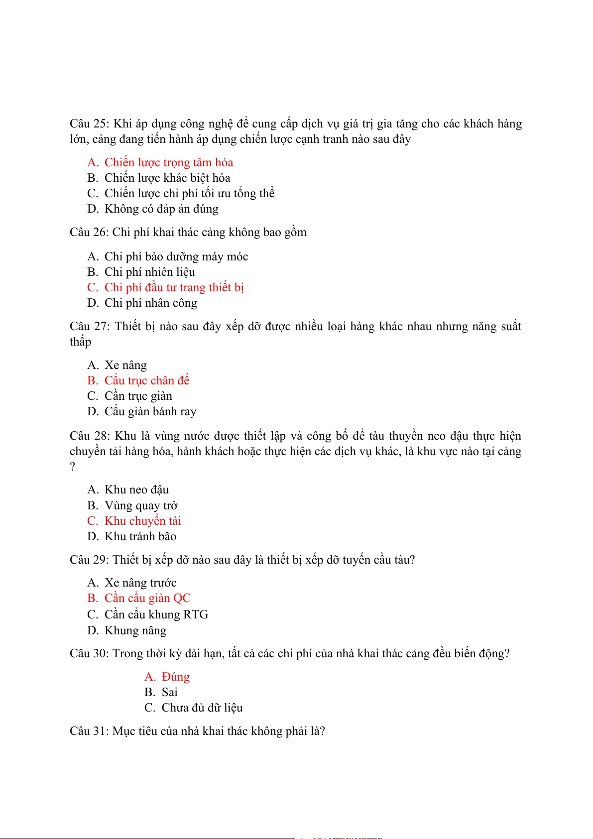 Câu 26: Chi phí khai thác cảng không bao gồm