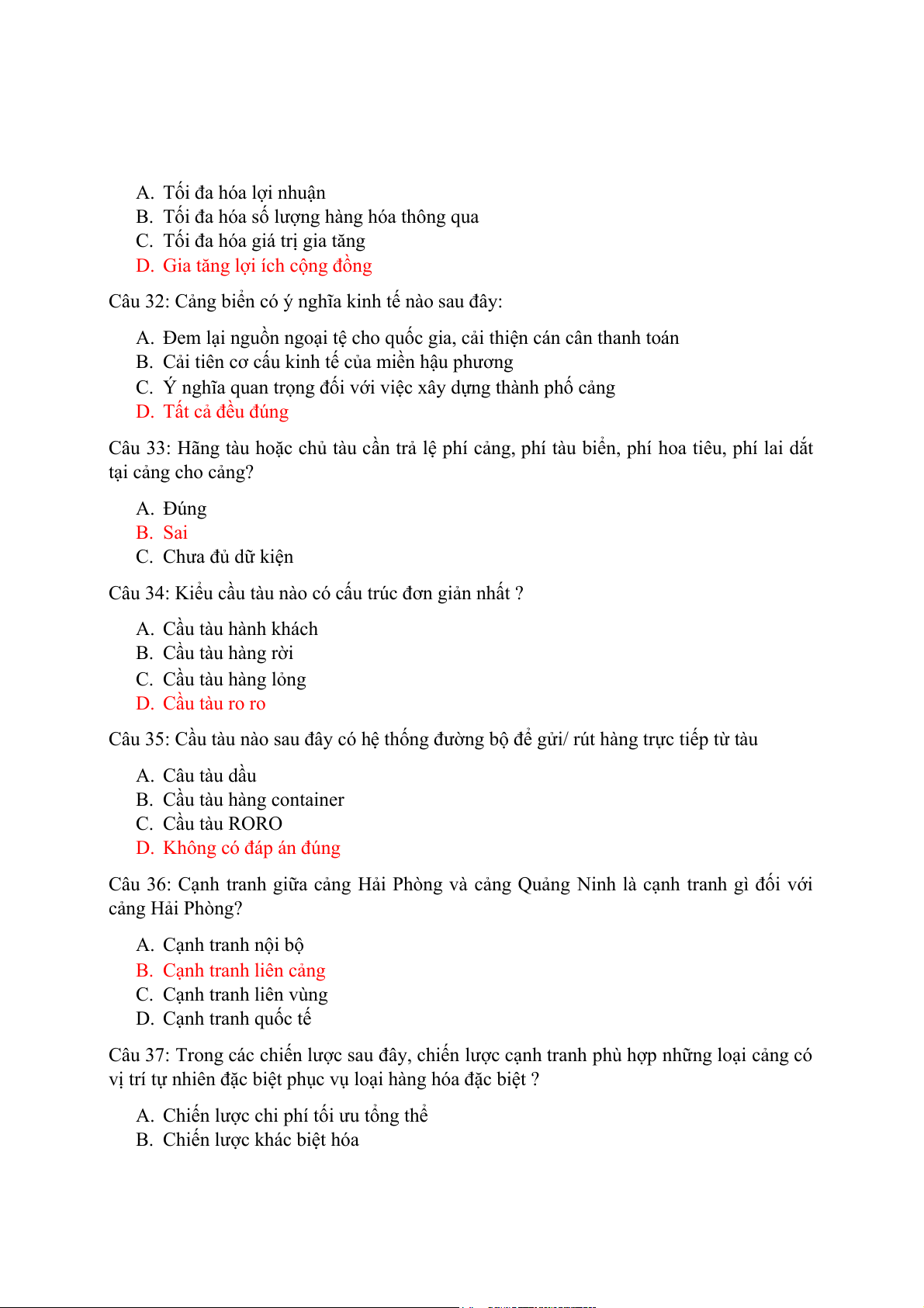 Câu 36: Cạnh tranh giữa cảng Hải Phòng và cảng Quảng Ninh là cạnh tranh gì đối với cảng Hải Phòng? A. Cạnh tranh nội bộ B. Cạnh tranh liên cảng C. Cạnh tranh liên vùng D. Cạnh tranh quốc tế