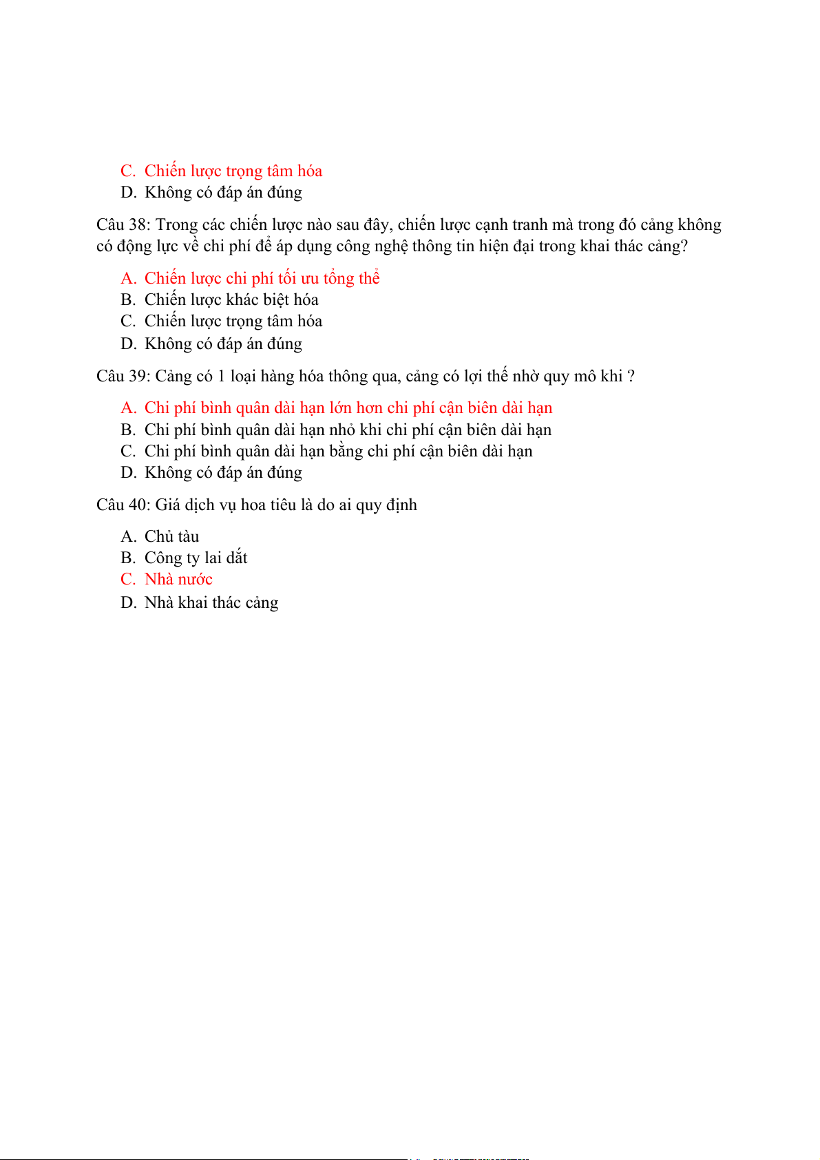 Câu 37: Trong các chiến lược sau đây, chiến lược cạnh tranh phù hợp những loại cảng có