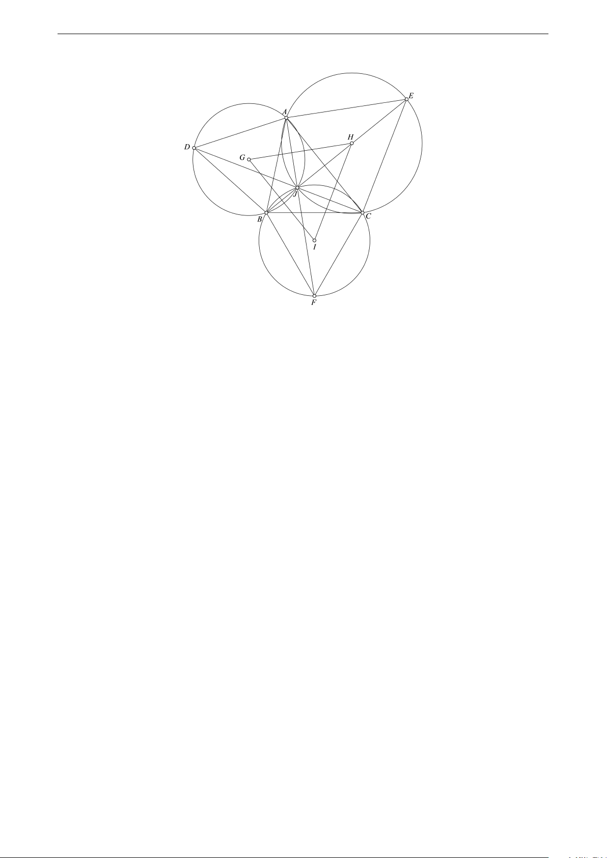 HBC. Do đó, H đối xứng với P qua BC. Các điểm còn lại cũng chứng minh tương tự. 1 5. Có \ OAE = 90◦ − [ AOC = 90◦ − \ ABC = 90◦ − [