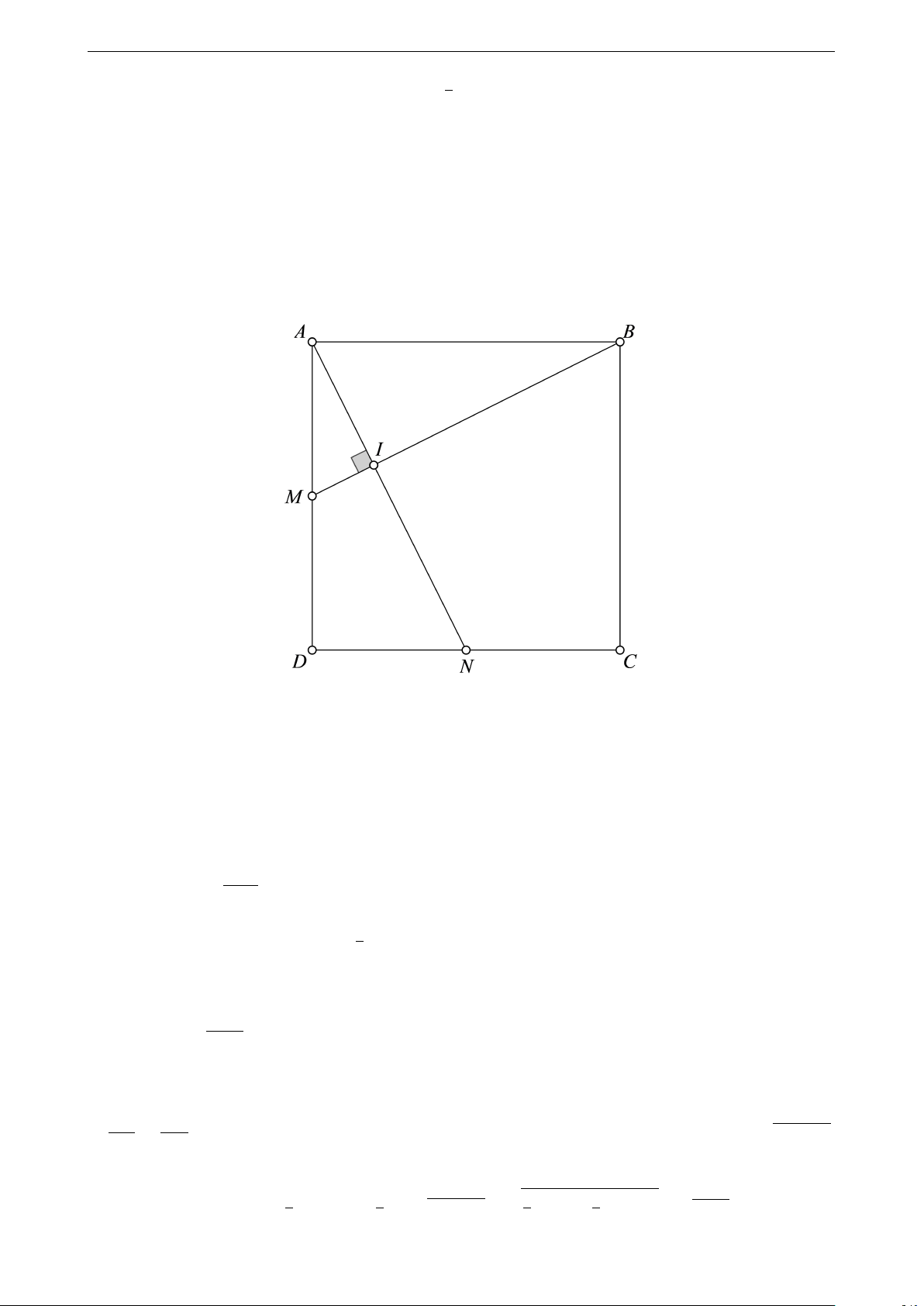 D = 90◦, AD = AB, DN = AM . Suy ra △ADN = △BAM (c-g-c), do đó \ DAN = \ ABM . Suy ra \ M AI + \ AM I = \ DAN + \ AM B = \ ABM + \ AM B = 90◦.
