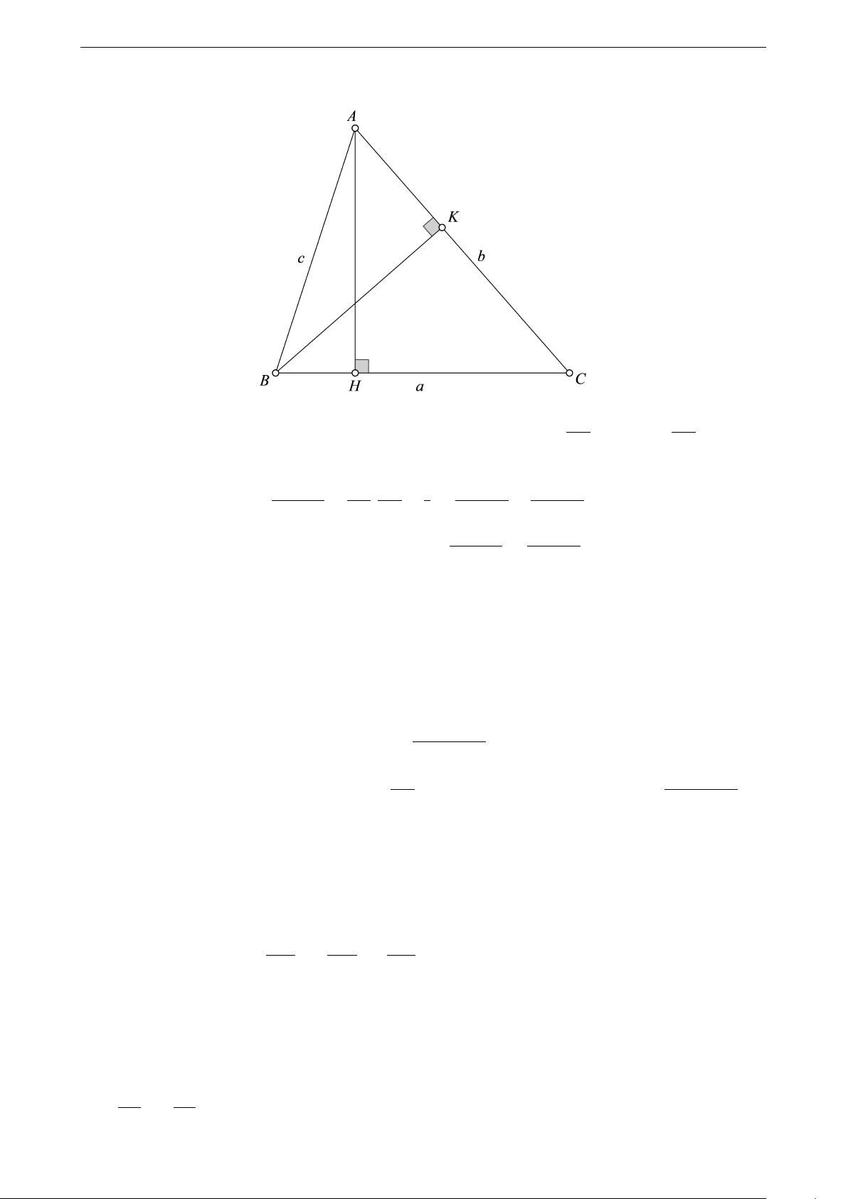 AH.BC = AB.AC = 3.4 = 12 ⇒ AH = = = 2, 4 cm. BC 5 9 BH.BC = AB2 = 9 ⇒ BH = = 1, 8 cm. 5