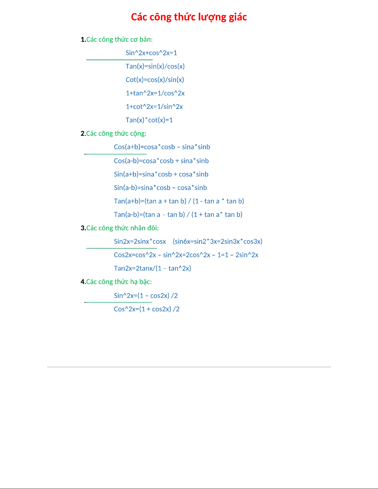 Các công thức lượng giác cơ bản và nâng cao - Tóm tắt dễ hiểu