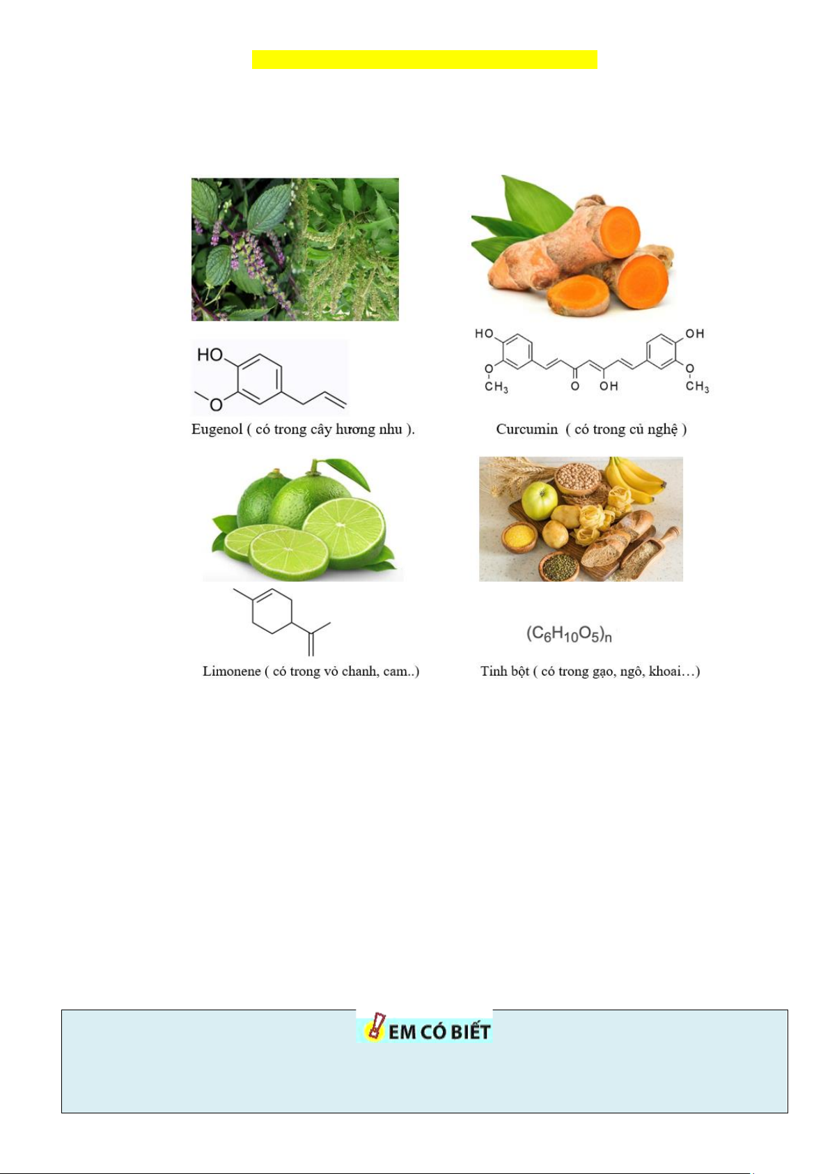 Ví dụ : Một số hợp chất hữu cơ trong tự nhiên