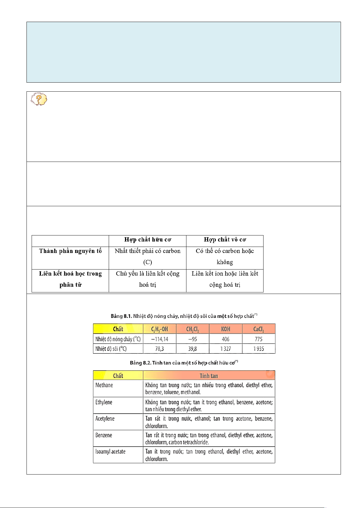 a) So sánh nhiệt độ nóng chảy, nhiệt độ sôi của các chất hữu cơ với các chất vô cơ trong Bảng 8.1. Giải