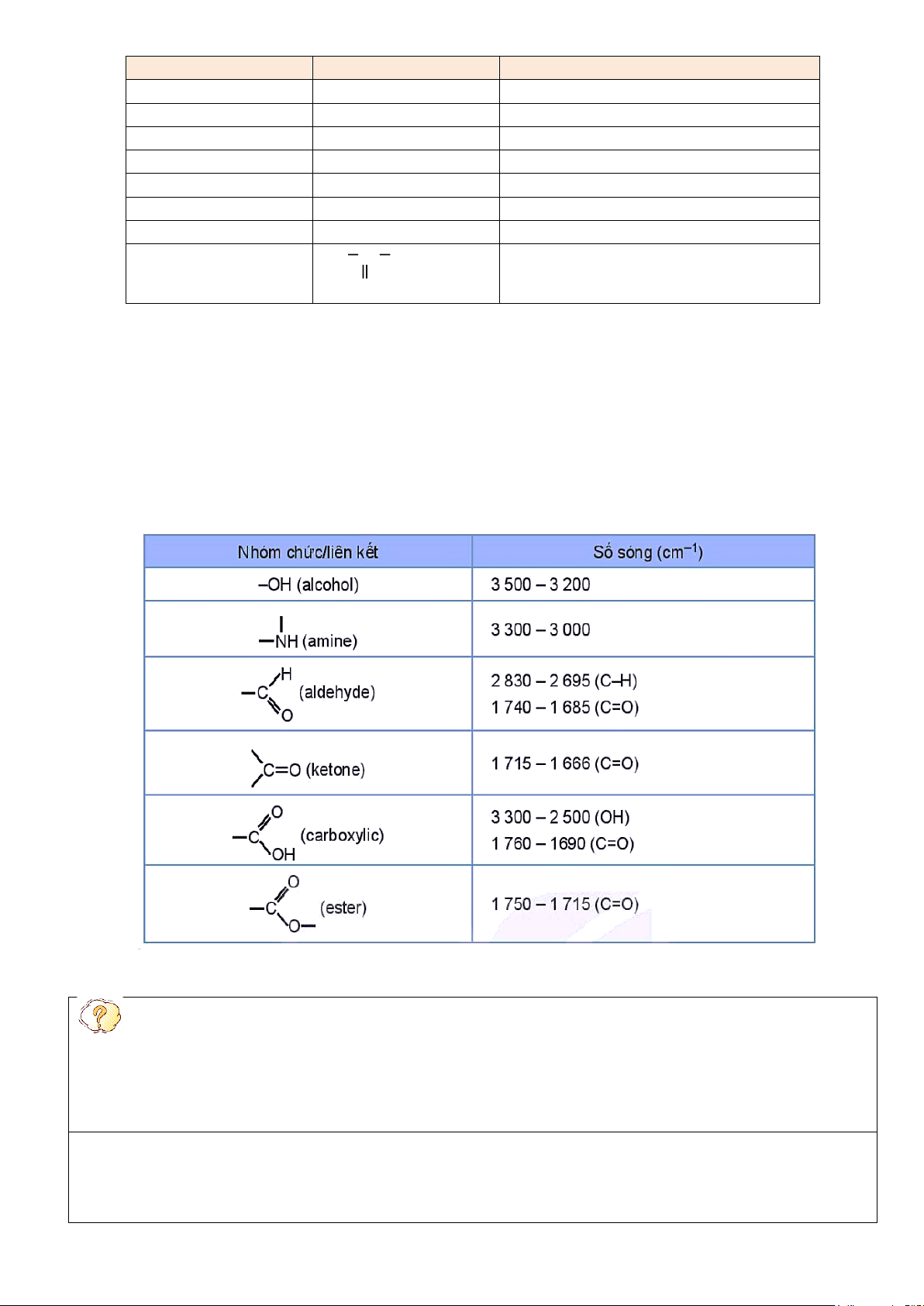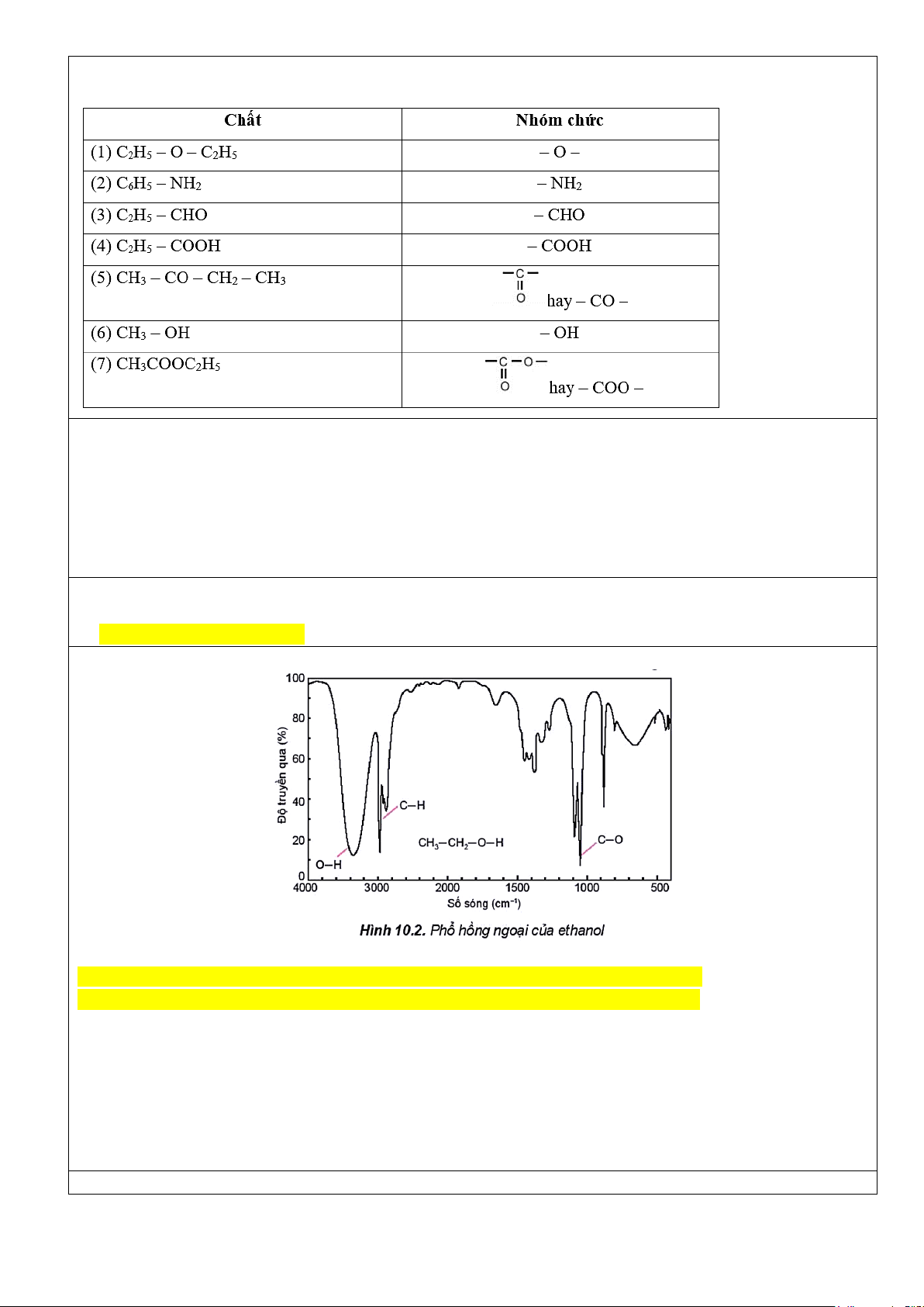 Bảng 10.2. Số sóng hấp thụ đặc trưng trên phổ hồng ngoại của một số nhóm chức cở bản