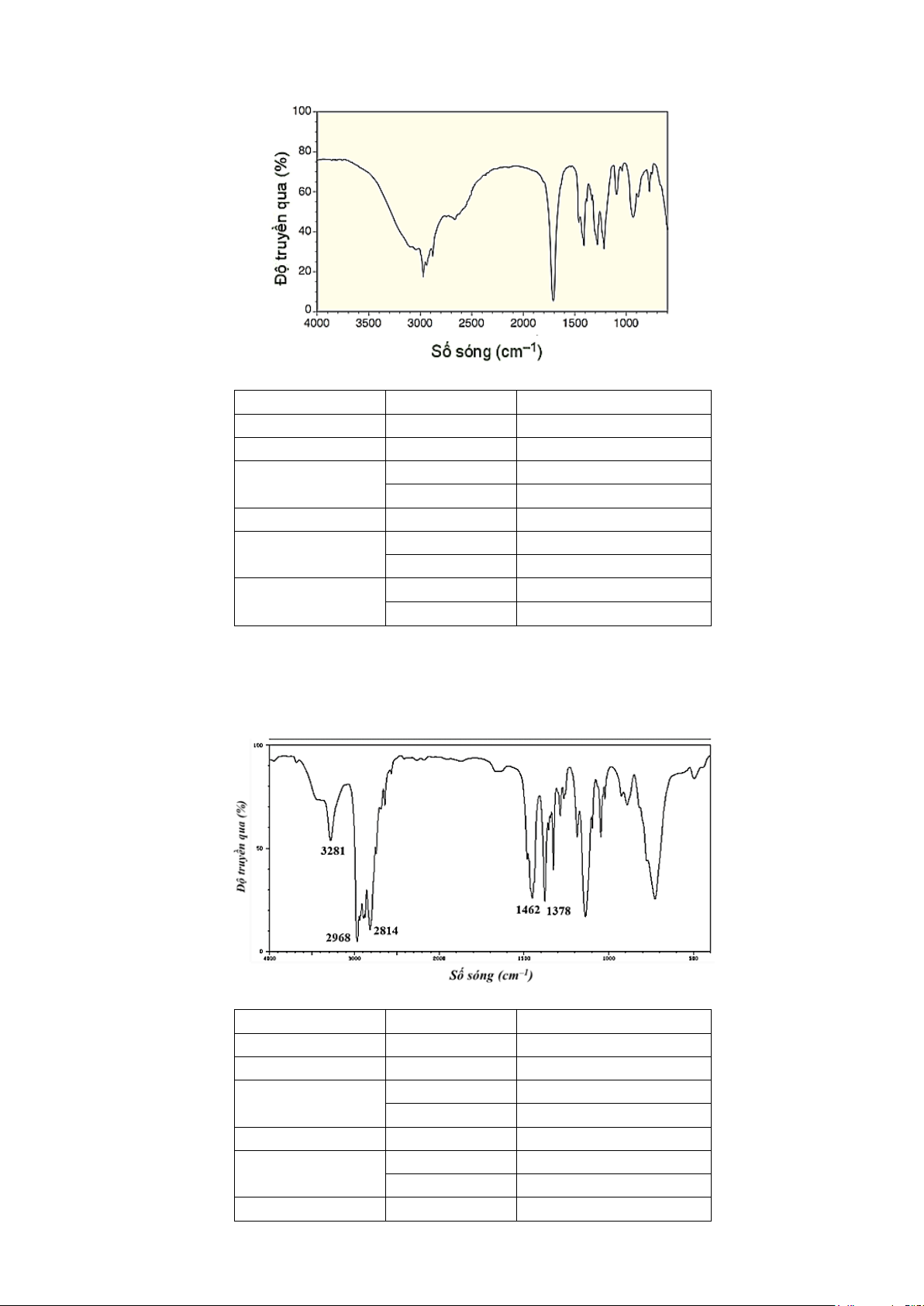 Bảng tín hiệu phổ hồng ngoại của một số nhóm chức cơ bản Hợp chất Liên kết Số sóng (cm-1) Alcohol O – H 3500 – 3200 Amine N – H 3300 – 3000 C – H Aldehyde 2830 – 2695 C = O 1740 – 1685 Ketone C = O 1715 – 1666 C = O Carboxylic acid 1760 – 1690 O – H 3300 – 2500 Ester C = O 1750 – 1715