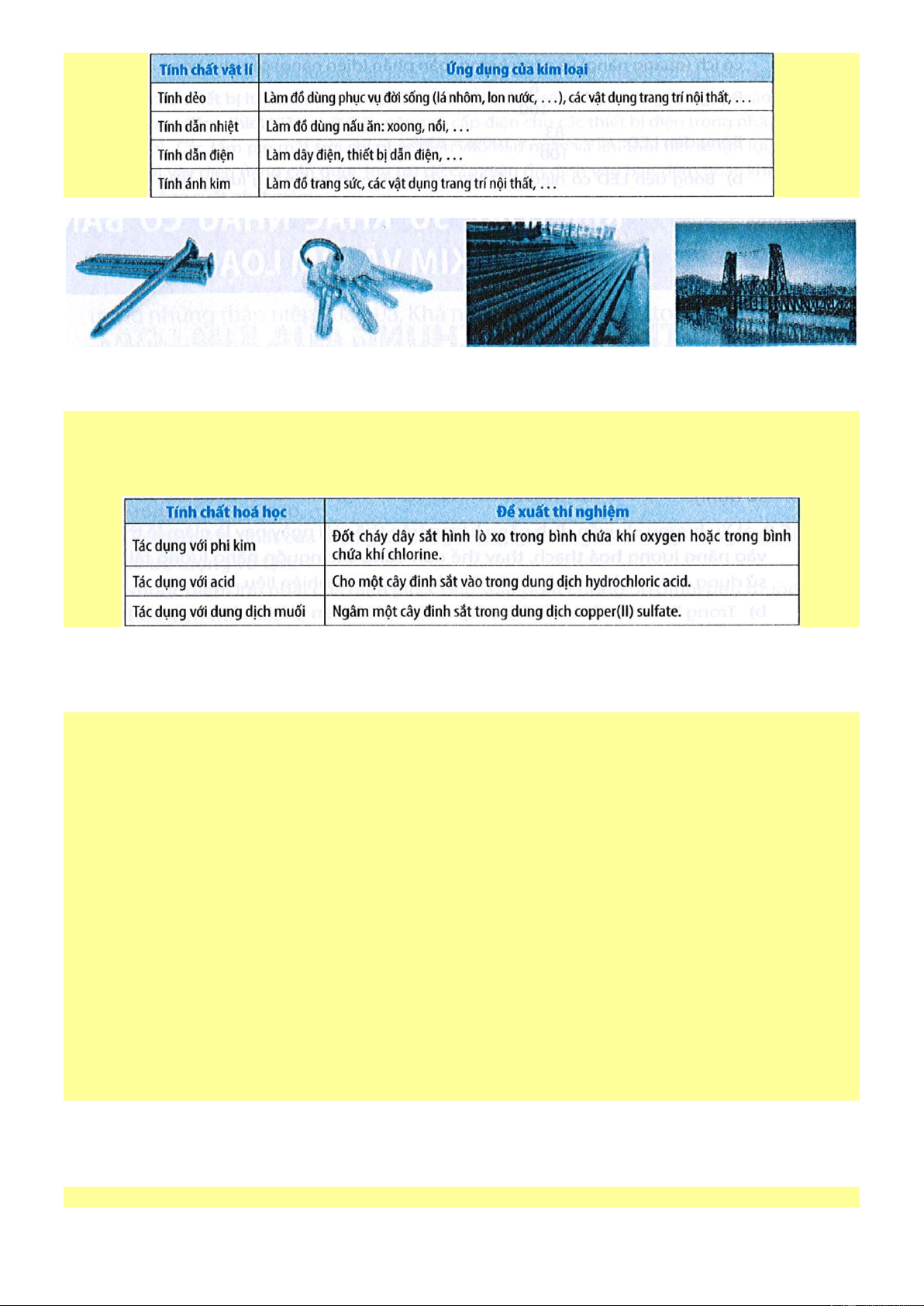 Câu 1. [KNTT - SBT] Cho các kim loại nhôm, sắt, vàng tác dụng với oxygen. Cho biết các hiện tượng
