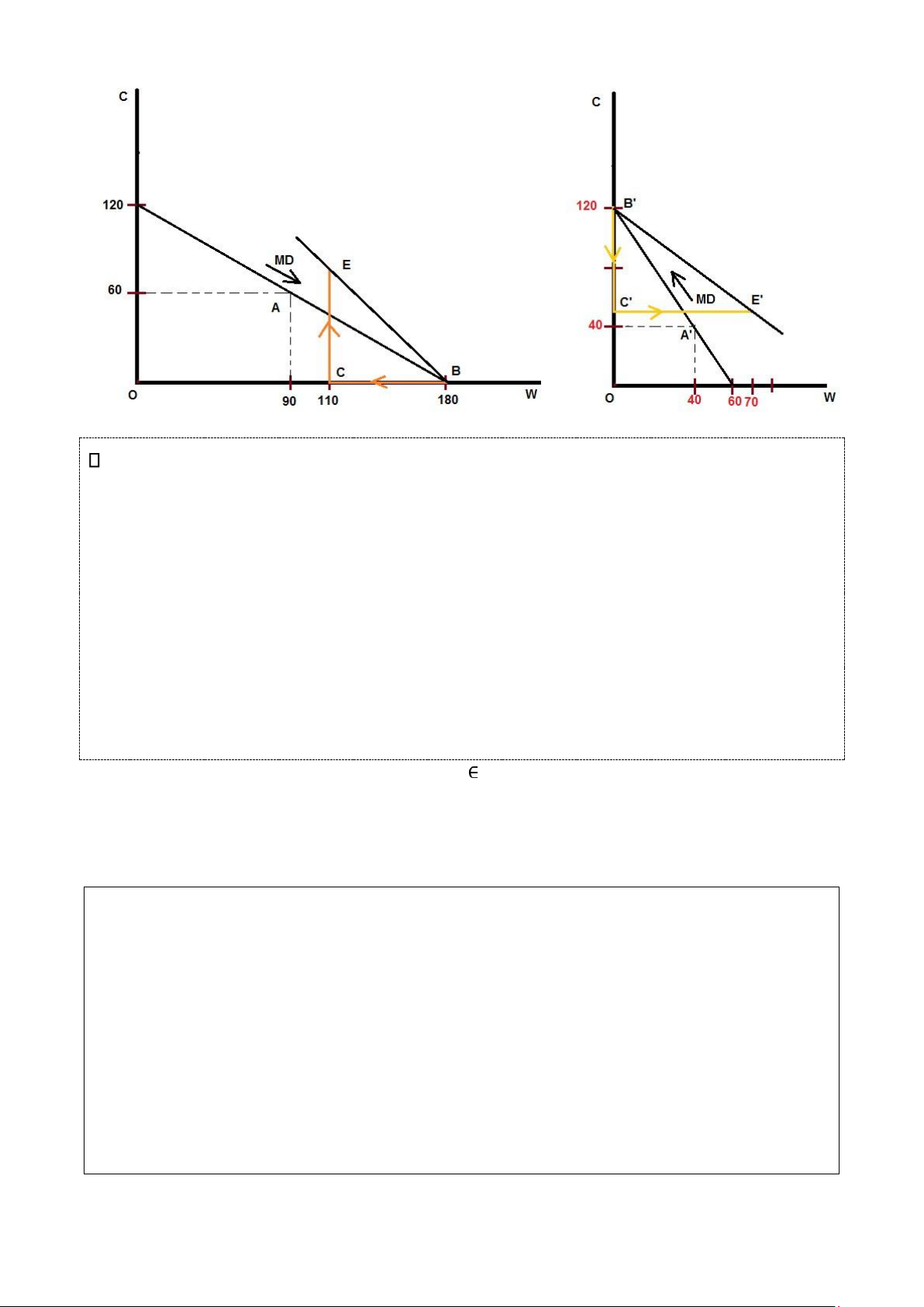có mậu dịch mậu dịch xảy ra, các điểm tự cung tự cấp của 2 mậu dịch lần lượt là A (90W, 60C) và A’(40W, 40C). Hướng dẫn giải