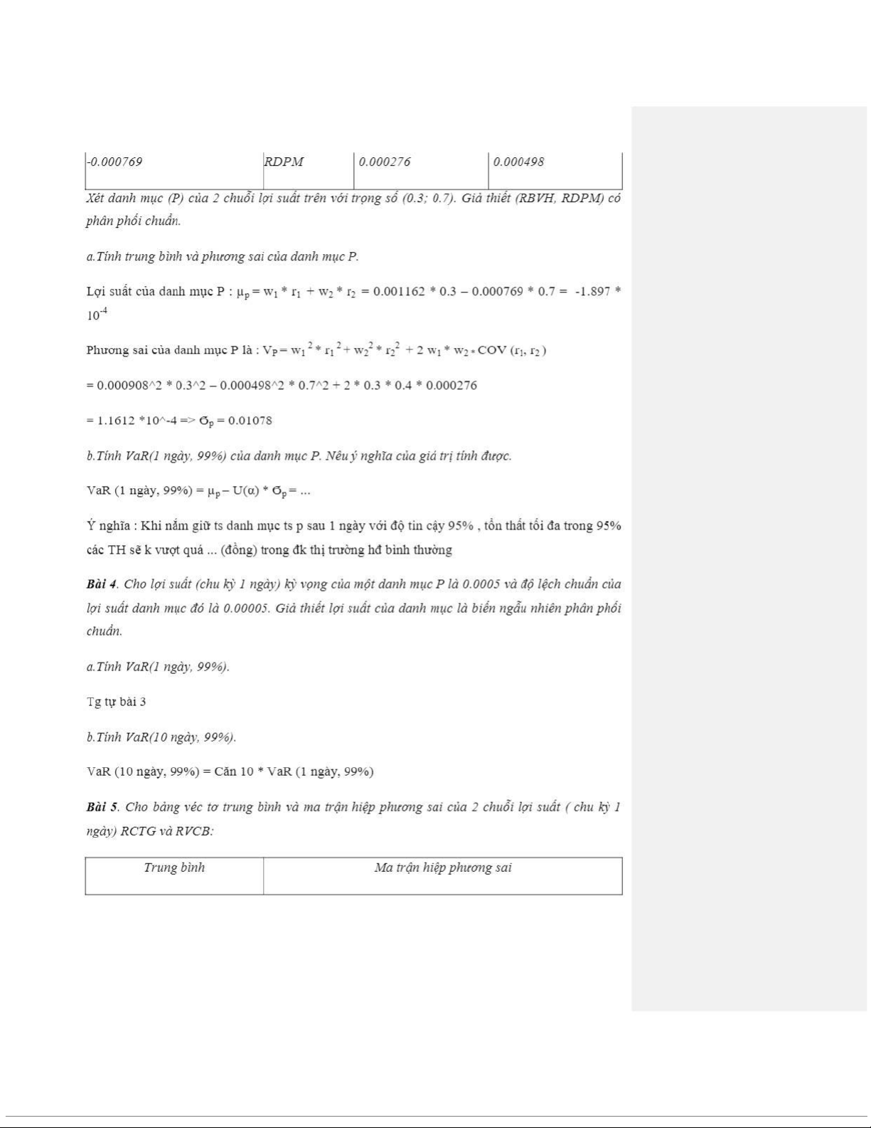 Bài tập Mô hình đo lường rủi ro môn Quản trị rủi ro | Trường Đại học Kinh Tế Quốc Dân
