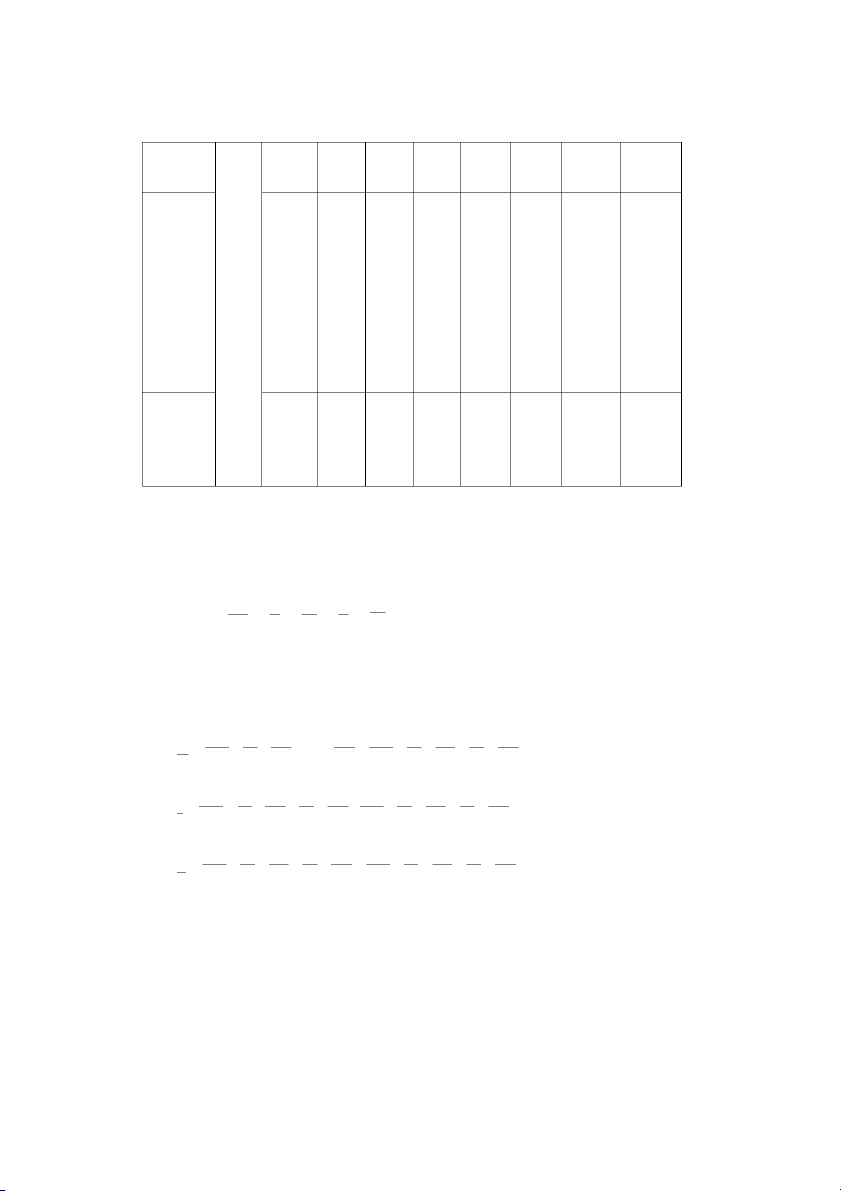 b. Phân tích thực tế năm 2023 với thực tế năm 2022 Nhân tố Ký hiệu ĐVT Năm Năm Ký hiệu Mức độ nhân tố 2022 2023 mức độ ảnh ảnh hưởng hưởng cWa các cWa các nhân tố nhân tố Số lượng 112 125 95,94 máy móc thiết bị sản SM Máy ∆ GO xuất sử (SM) d]ng bình quân Số ngày 300 300 0 làm việc N Ngày ∆ GO bình quân ( N) 1 máy Số ca làm 2 2 0 việc bình quân 1 Ca Ca ∆ GO(Ca) máy 1 ngày Độ dài 1 10 10 0 ca làm D Giờ ∆ GO việc cWa 1 ( D) máy Năng suất 0.00123 0.00124 7,5 bình quân Tỷ đồng/ U ∆ GO g máy (Ug) giờ 1 máy Mức - - 103,44 chênh lệch tuyệt đối ∆ GO Tỷ đồng ∆ GO tổng giá trị sản xuất Nhận xét:
