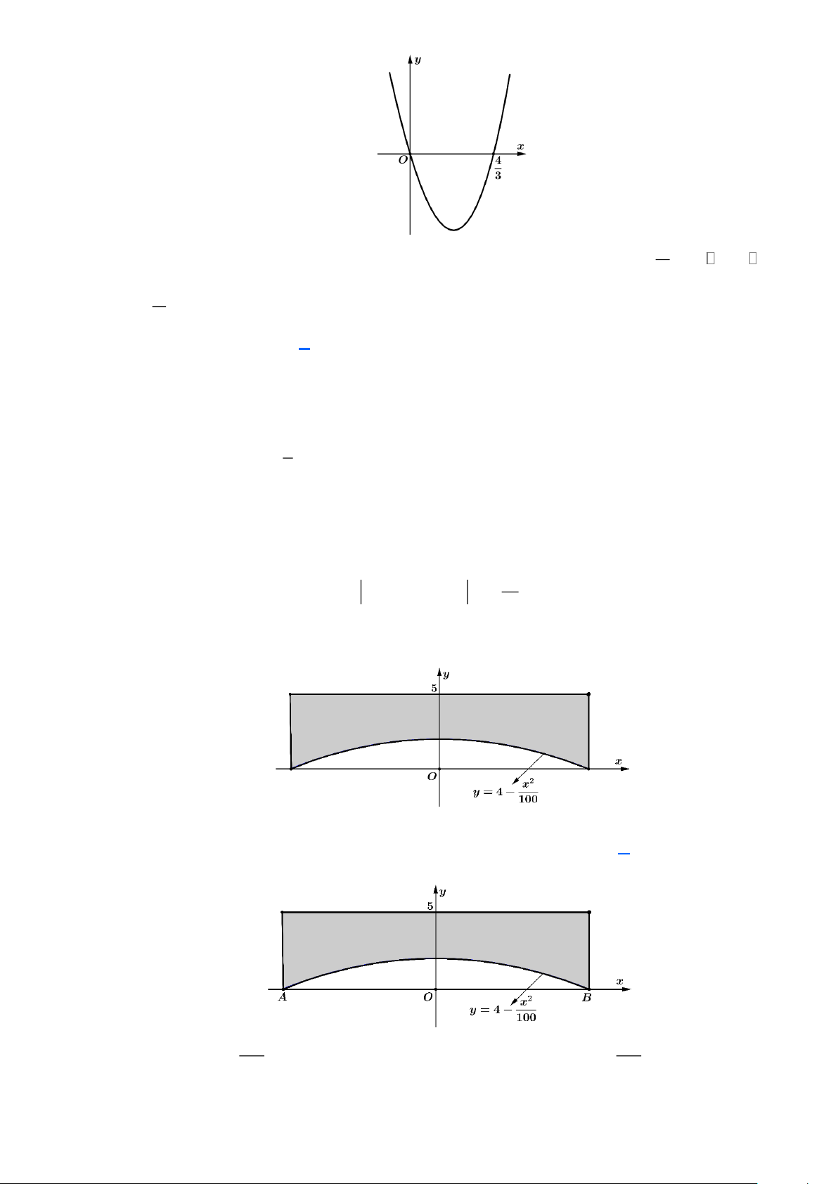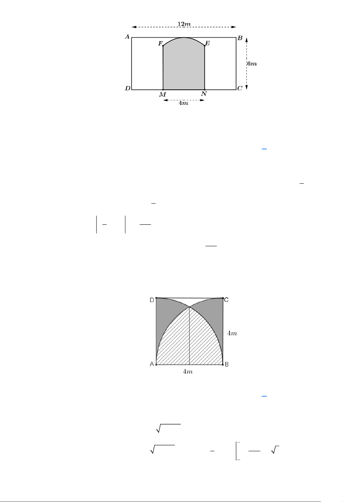 : y = − x + 6 ; y = 0; x = −2; x = 2 . 2 2 1 208 Khi đó: 2 S = − x + 6dx = ( 2 m ) . 2 9 2 − 208