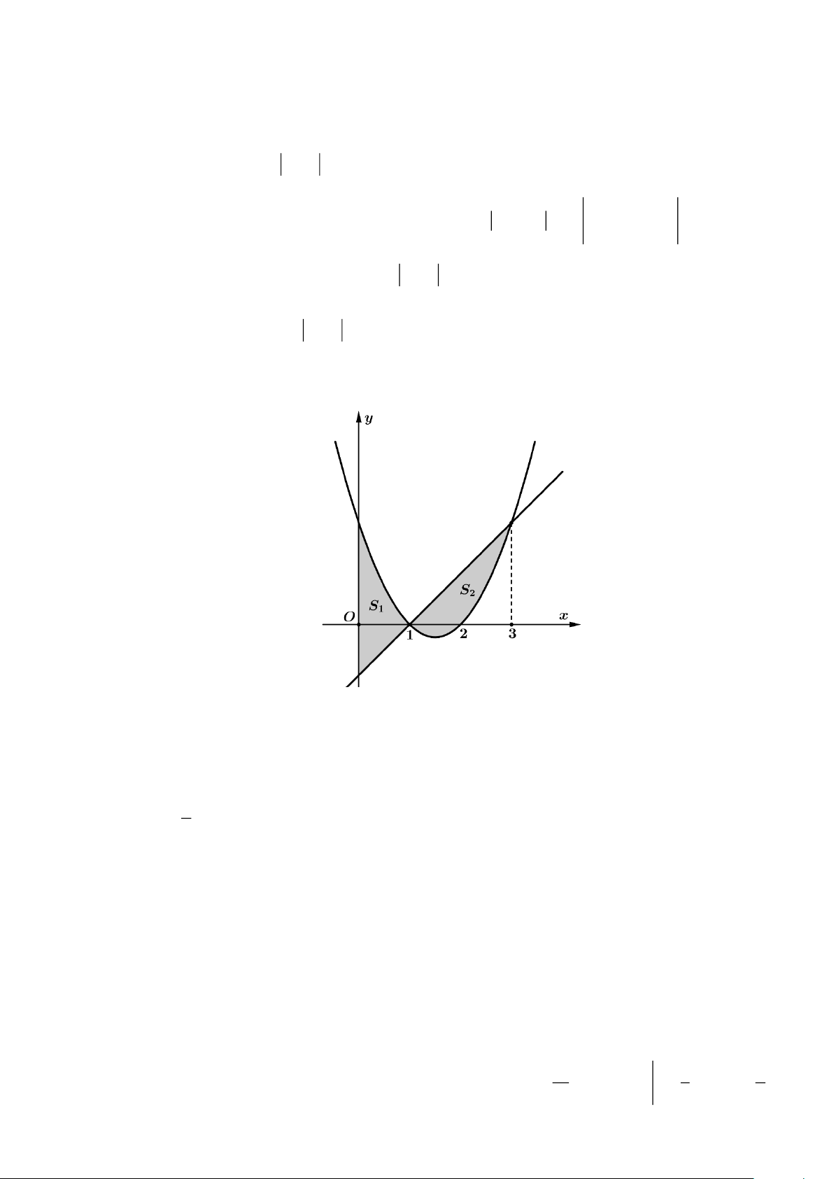 y = x − 3x + 2 và y = x −1 và S ;S là phần diện tích phần được tô như 1 2 trong hình dưới.