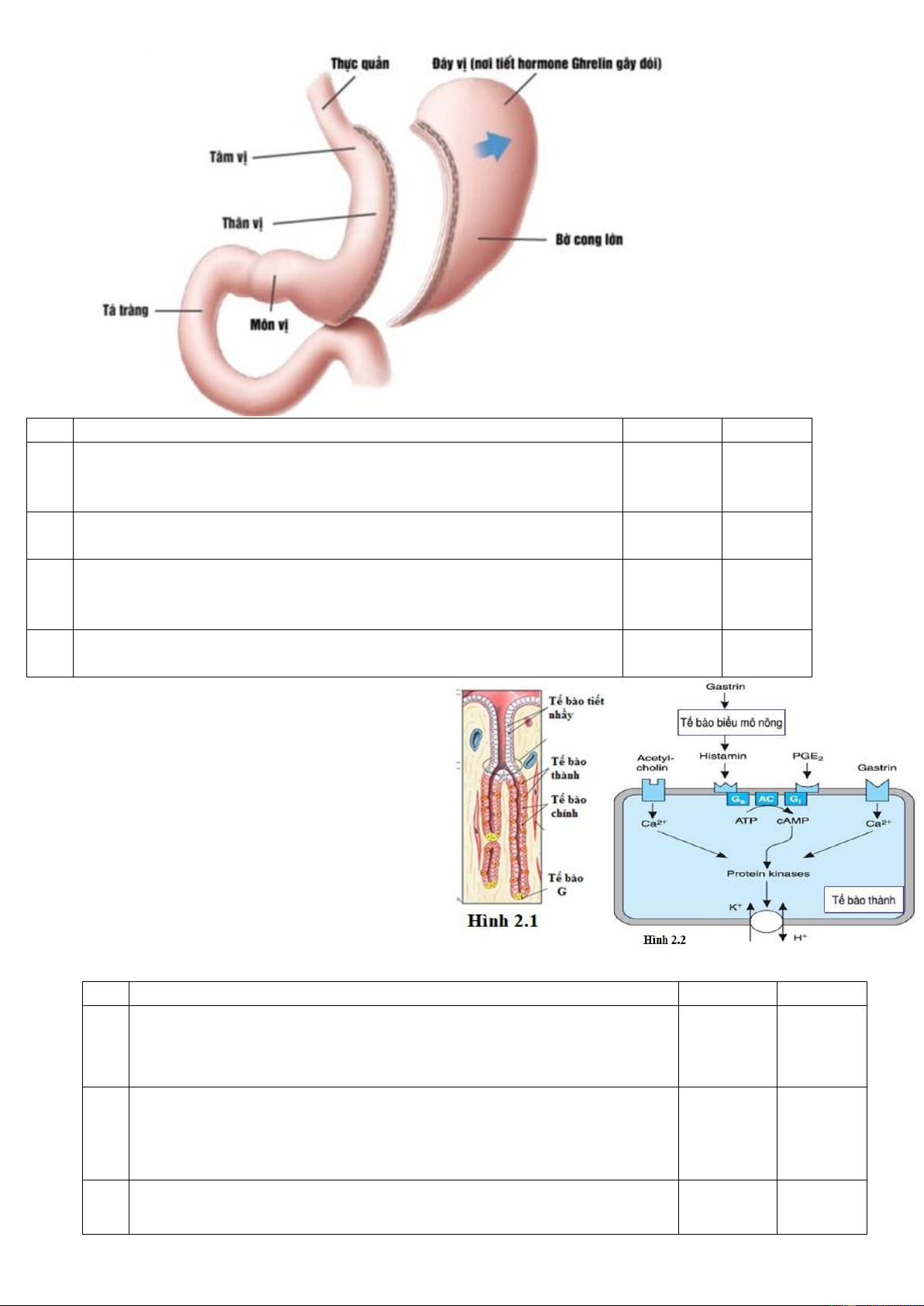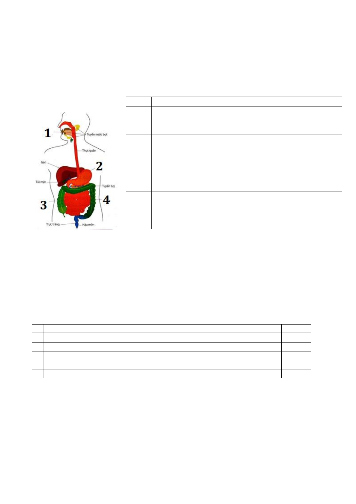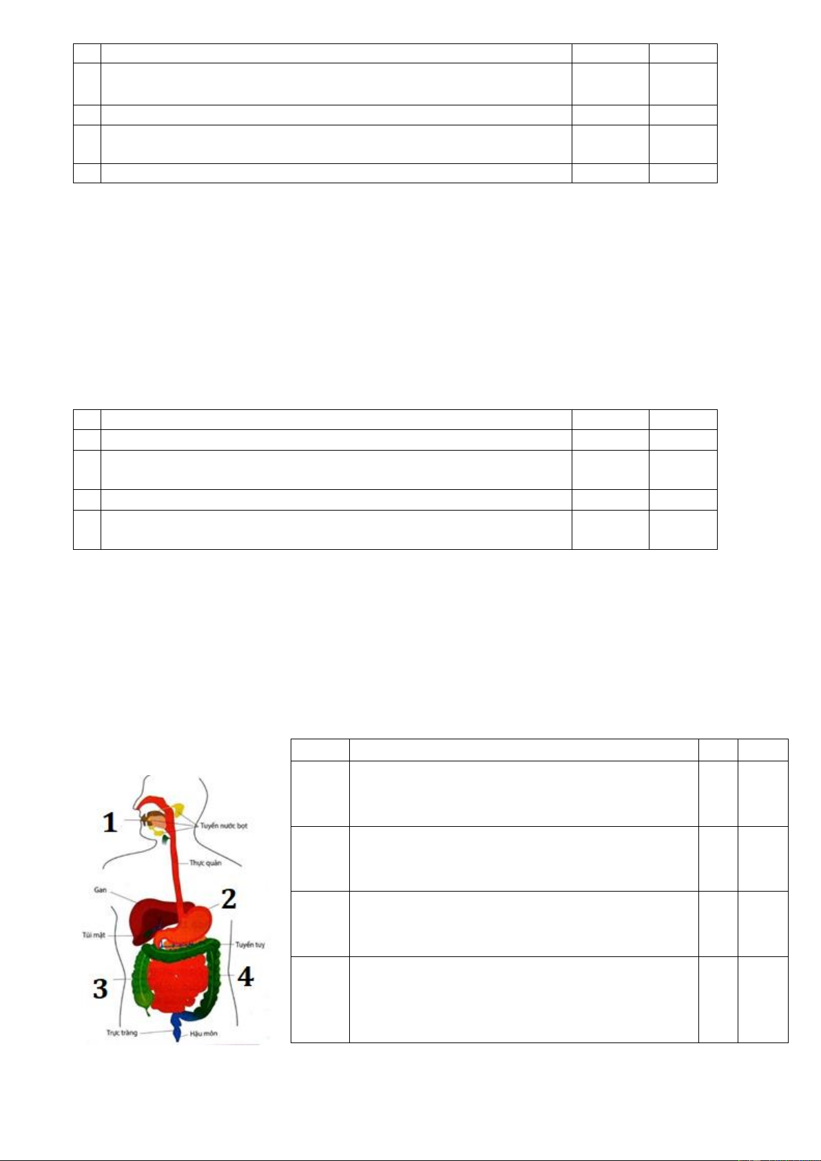 Câu 21. Trong ống tiêu hóa của người, các cơ quan tiêu hóa được sắp theo thứ tự: Miệng →thực quản →