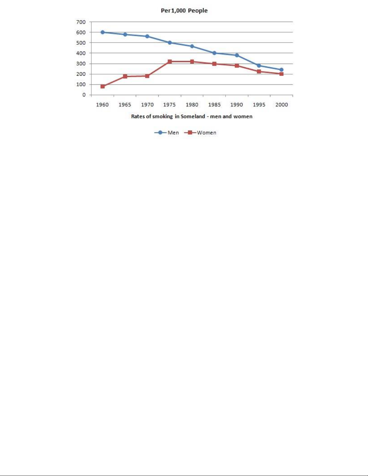 The line graph shows/describes/illustrates the figures of 1000 cigarette