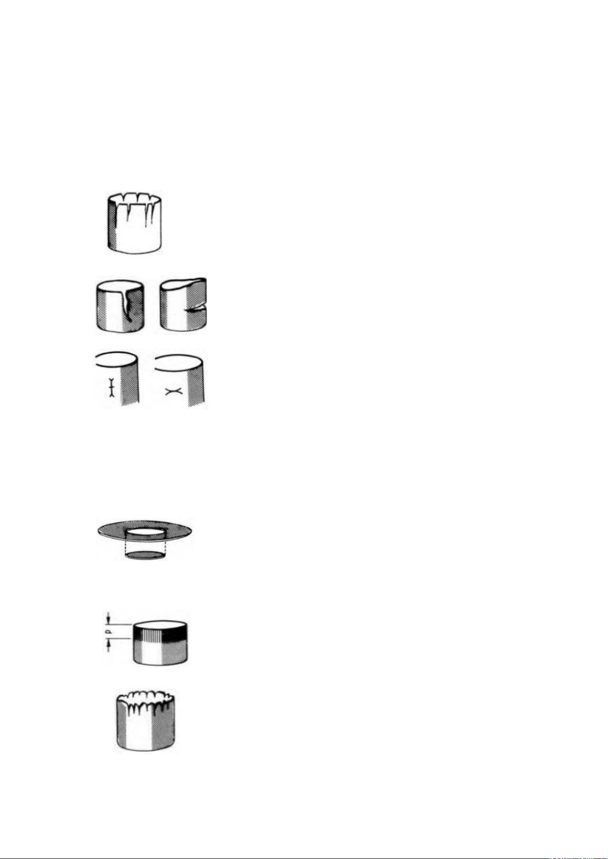 | Nứt không đều từ mép thành xuống dưới. Các vết nứt loại này thường chỉ xuất hiện sau vài ngày hoặc vài tuần kể từ khi dập. | Ứng suất quá cao. | Ủ vật liệu ngay sau khi dập. |