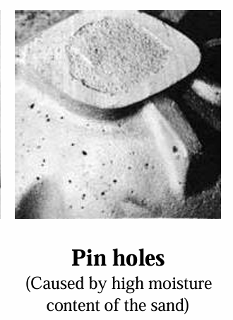 | Do độ ẩm cao trong cát khuôn (high moisture content). Khi kim loại lỏng rót vào, hơi nước bay hơi nhanh tạo áp lực khí, đẩy kim loại lên tạo lỗ lớn, thường ở bề mặt hoặc gần bề mặt. | Sấy khô cát khuôn, kiểm soát độ ẩm, cải thiện hệ thống thoát khí (vents). |