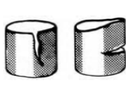 | Phồng rộp ở các mép đáy. Đáy phồng lên như thể hiện bằng đường nét đứt. | 1. Thông gió chày kém, 2. Đôi khi cũng do bán kính cối mòn nặng. | Lắp đặt hoặc mở rộng lỗ thông gió. Đánh bóng bán kính cối. |