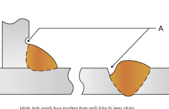 | - Góc vát quá nhỏ. Chiều dài cột hồ quang không quá lớn. - Dòng điện hàn quá nhỏ hoặc tốc độ hàn quá nhanh, không phù hợp với mối hàn. - Người hàn chọn góc độ điện cực hàn (que hàn) và cách đưa điện cực không chuẩn. - Điện cực hàn chuyển động không đúng theo trục mối hàn. | - Làm sạch các liên kết trước khi hàn. - Tăng góc vát và khe hở hàn. - Tăng dòng điện hàn và giảm tốc độ hàn. |