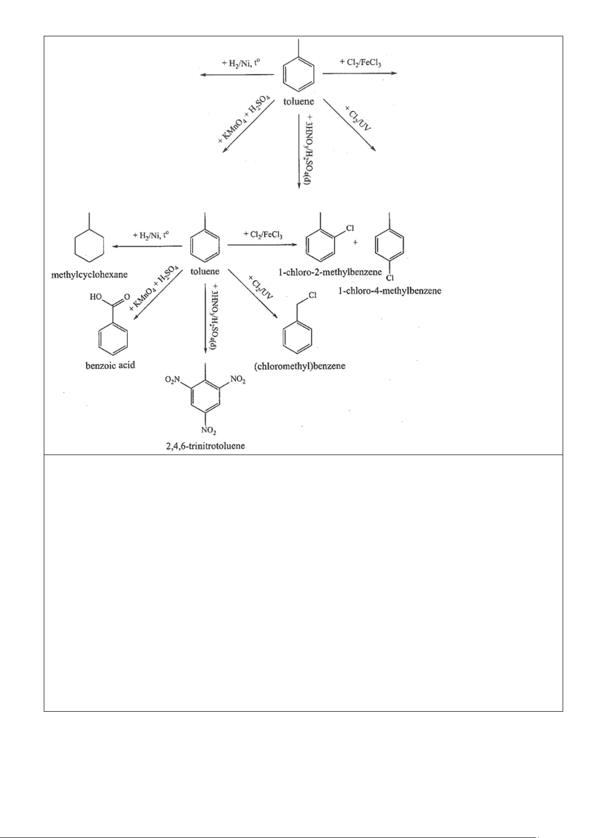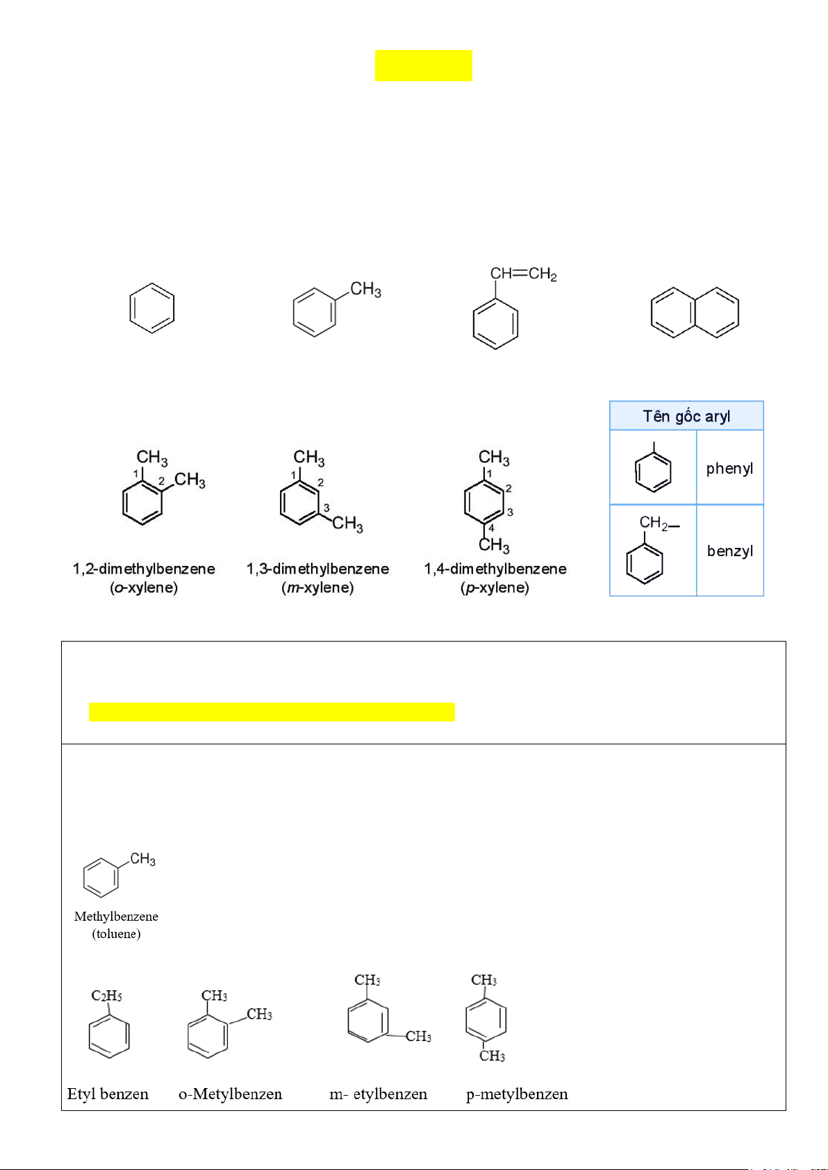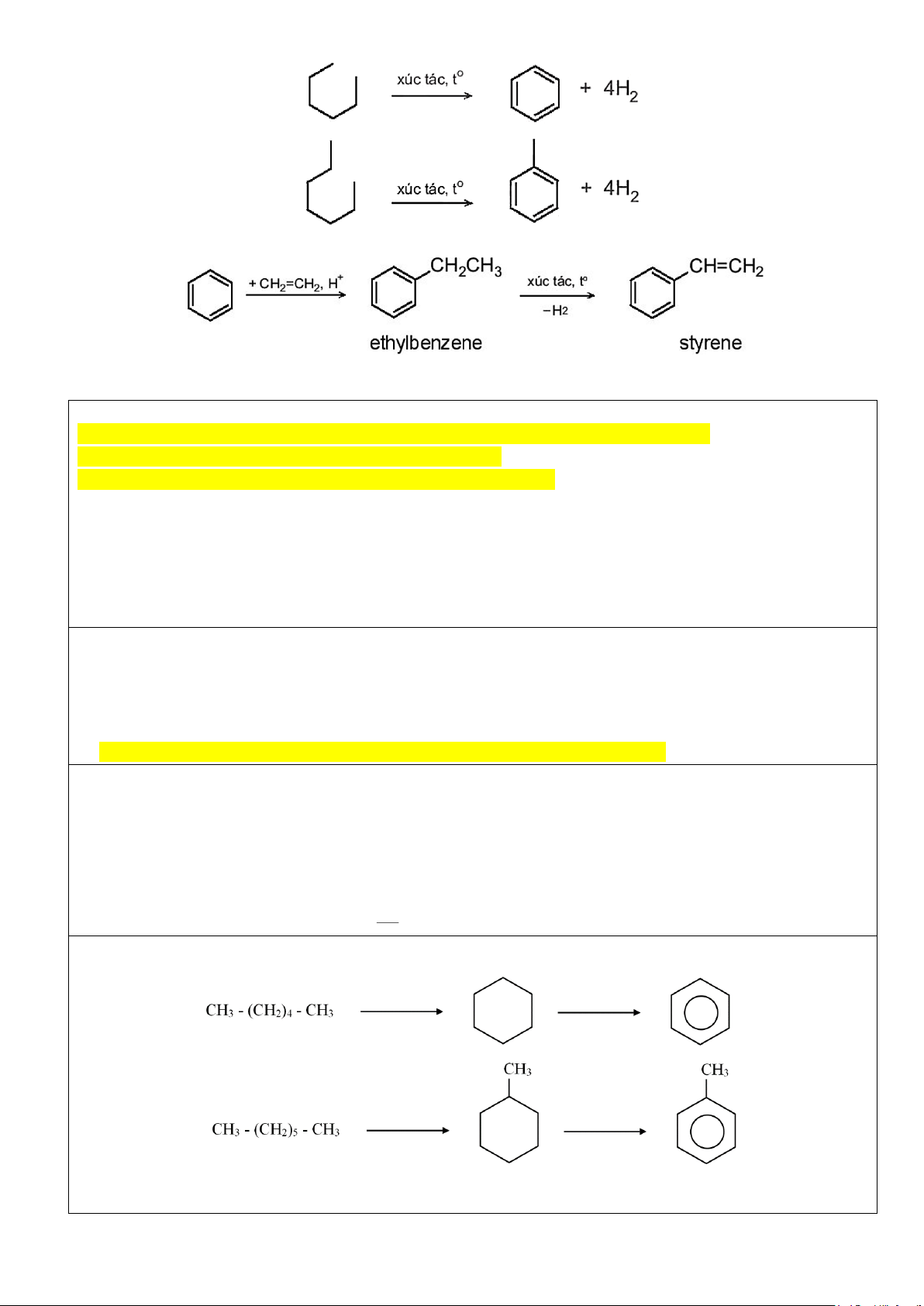 - Các arene như benzene, toluene, xylene dễ cháy và toả nhiều nhiệt. Trang 4 o PTHH: C t 7H8 + 9O2 ⎯⎯ → 7CO2 + 4H2O